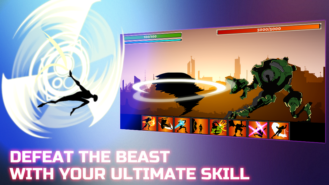 It's war time. Your blade is the only thing that stands between order and chaos. To be a hero, fighting with these netherworld beasts and machine robot from the dark world. Advance you fighting skills to unlock attacks and weapons to defeat the ultimate boss and win this epic war.