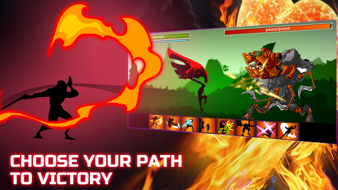 Revenge Of Shadow Fighter:Ultimate Weapon is a very addictive stickman shadow fighting game. When the lonely ninja come across the unknown weapon he unleashed the evil beast from the netherworld. To clean up the dark world and revenge the evil under shadow. You start the war fighting to the black shadow world. In each adventure battle, You'll play the warriors who are fighting with these giant and machine beast with your sword. My hero, keep forwarding and keep fighting, running into the dark to defeat the beasts and save these fail man and ninjas.