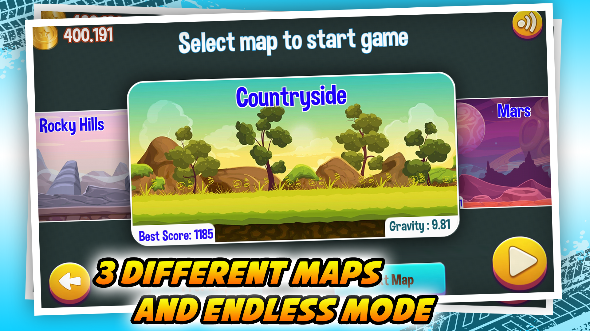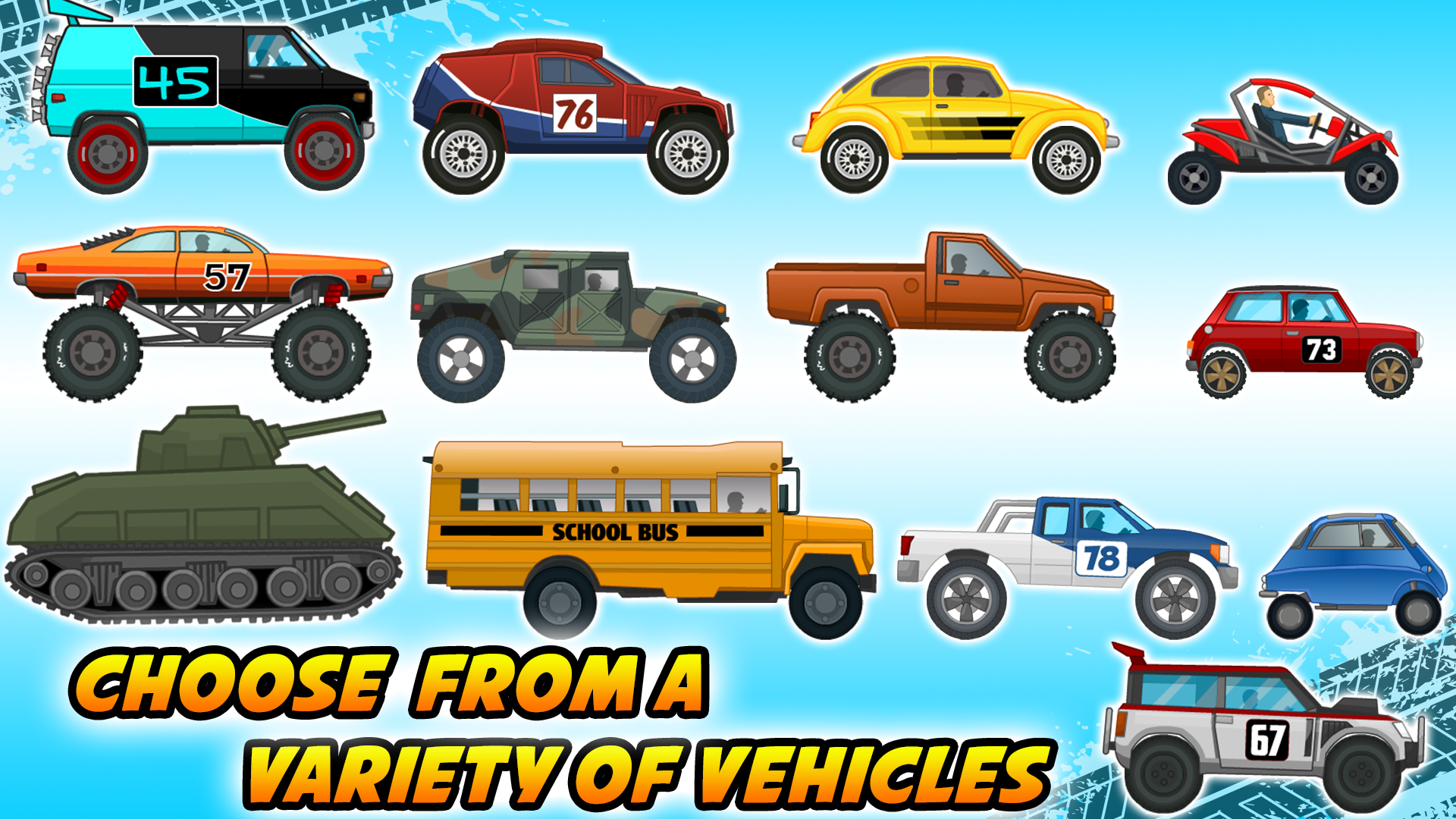 ◆ Cars have different properties like engine power, suspension and grip. Some cars are great climbers and some of them are speed enthusiastic.