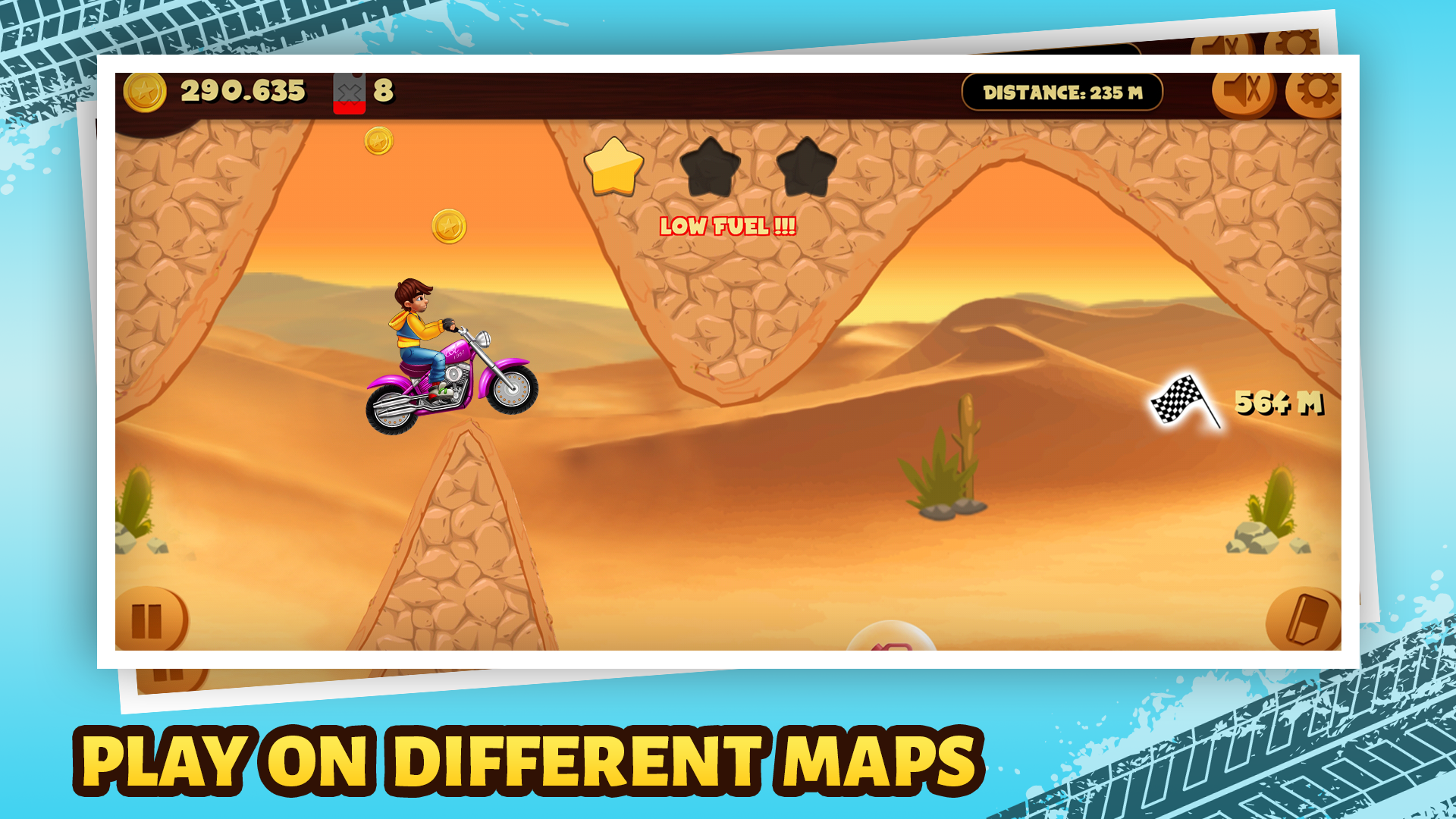 ◆ Collect coins, fuels and surprise coin packages while climbing hills.
