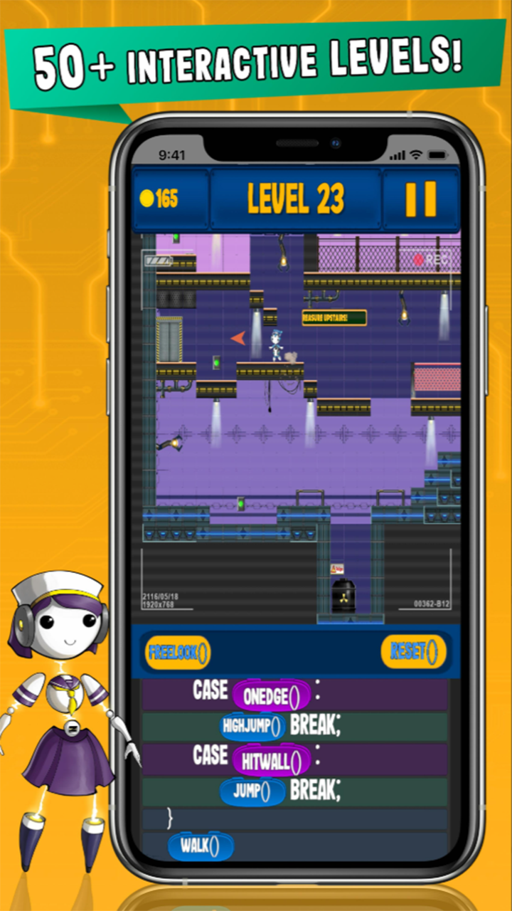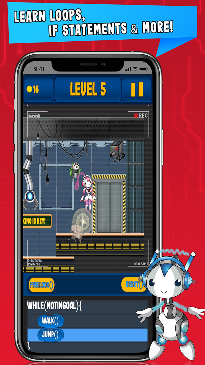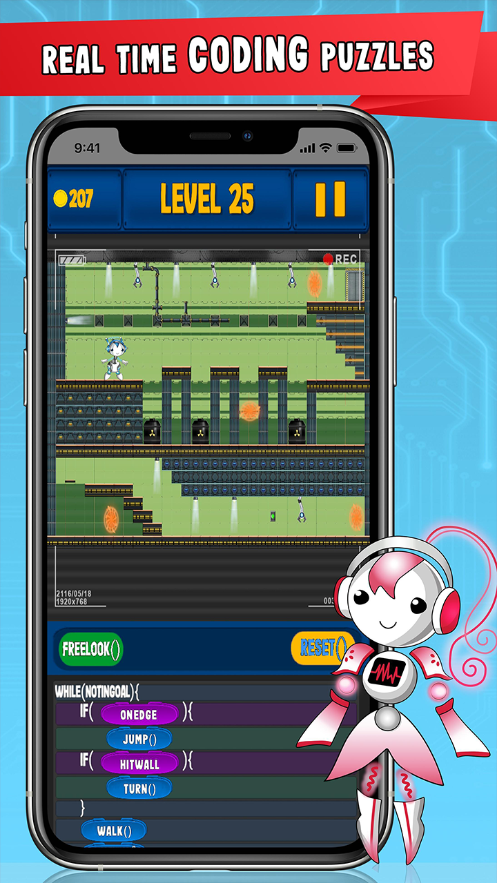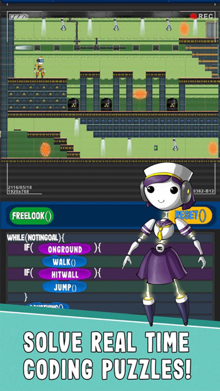 RoGo Coder is a unique real-time action coding game, meaning the player will have to think quickly, use trial and error, and logic to complete the levels. This brings more of a game-like feel to this educational coding app. Instead of the repetitive, place a function and hit play style most coding games have, RoGo Coder's real-time action encourages players to make decisions, embrace trial and error, and use quick problem-solving skills.
