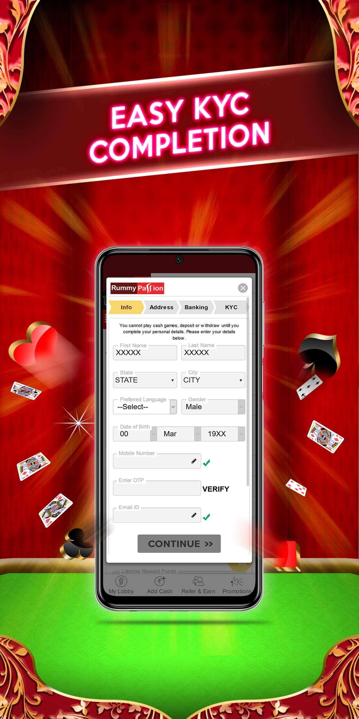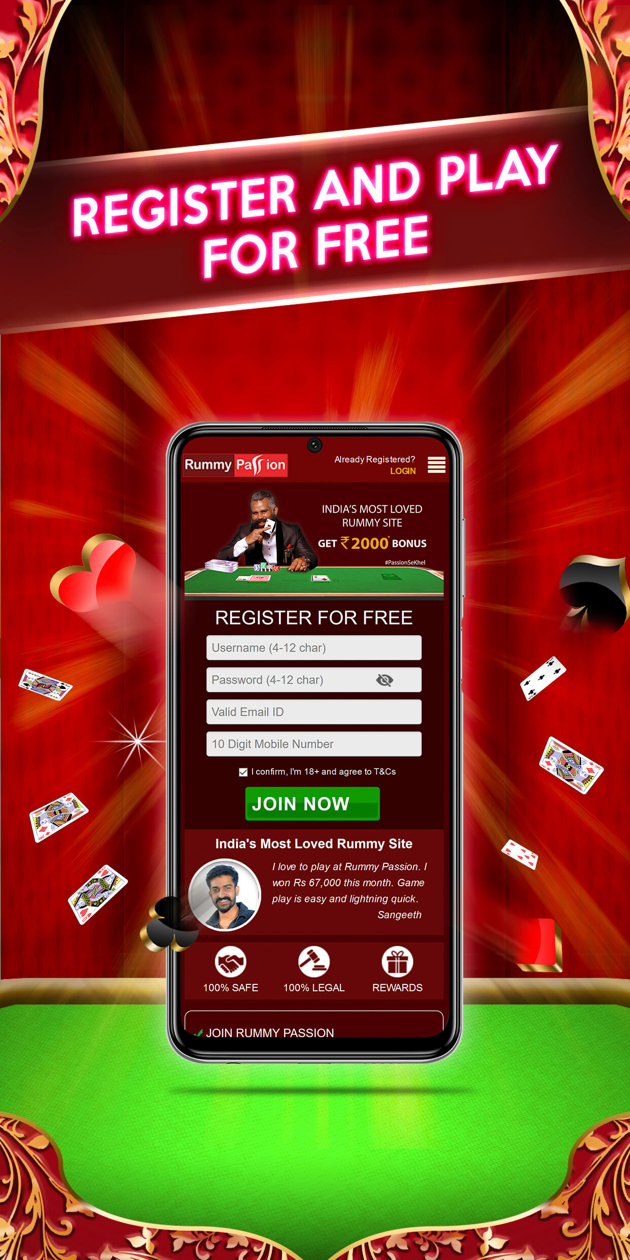 Welcome to the World of Rummy Passion, India's Most Loved Rummy App. Loaded with excellent features, multiple offers and game variants, and a player base of 50 Lakh+, the app stands apart from the rest and gives players much-needed amusement. Download the app today and get up to Rs 10,000 Match Bonus in the first week of deposit. Play cash rummy games for real money in India! Keeping players’ interest at the forefront, Rummy Passion is undoubtedly an amazing app to have on your Smartphone. What’s more? Choose any table of your choice and start competing against online players from across India. Put your skills to use and see success kissing your feet.
