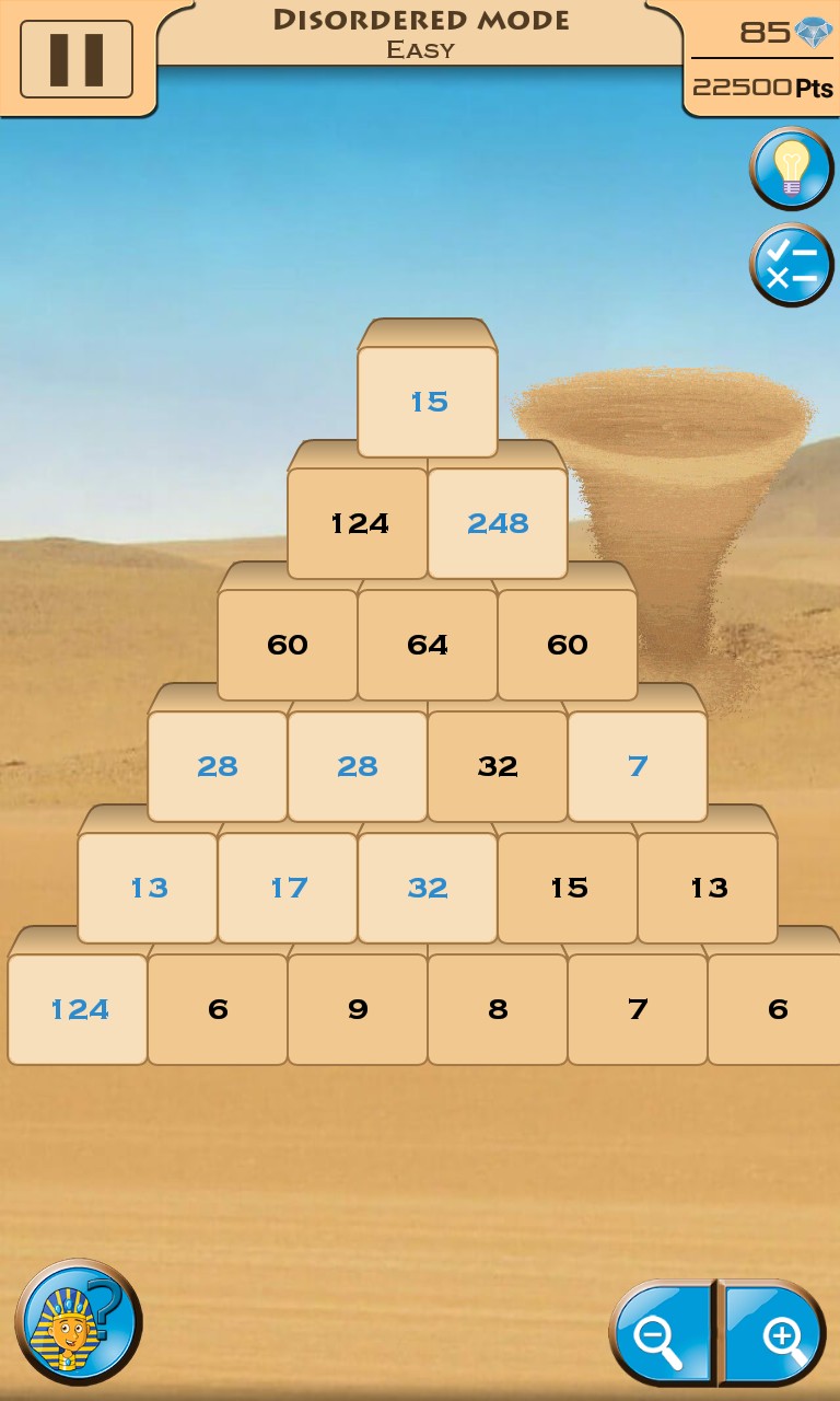 You just have to complete the pyramid using the available numbers by adding and subtracting them to win as many sapphires as you can!