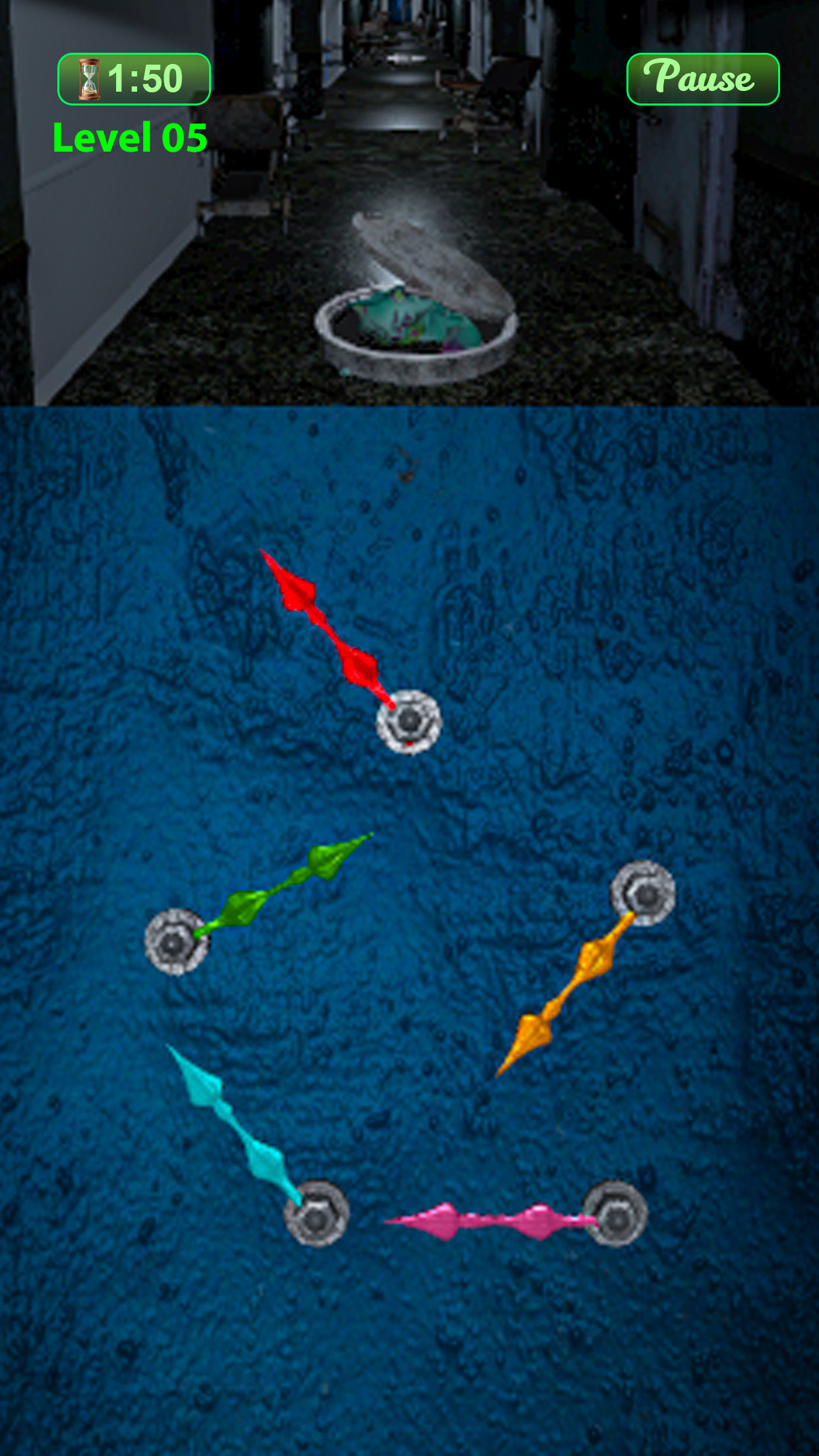 Experience spine-tingling brain teaser thrills in our new clock needles pin pull door horror escape game followed by dexterity twisted screw pin puzzles tangling the escape door! Prepare to be captivated by the intense atmosphere as you navigate your way through a series of chilling mazes. On your way you are encountered with the cursed pins and needles puzzles tangled with screws and you have to unscrew the knots of cursed metal plates and make the metal plate fall down, be the screw master & quickly unscrew and take off all nuts and bolts to clear the way. But beware, every screw pin and needle puzzle untangling will bring you closer to a terrifying encounter with a relentless monster! Time is your key if you don’t solve the cursed screw pin puzzle in given time the hungry monster from the black hole behind will come out and eat you.