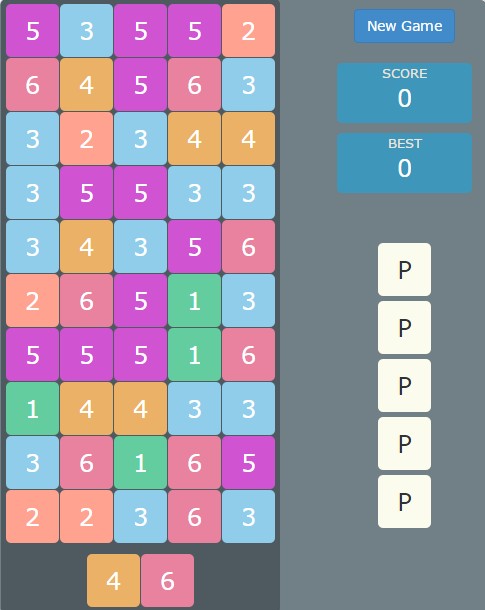 The game starts with 5x10 grid containing dice. Two dice are also rolled in the roll area.