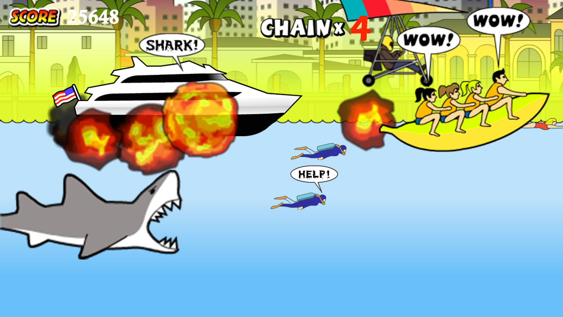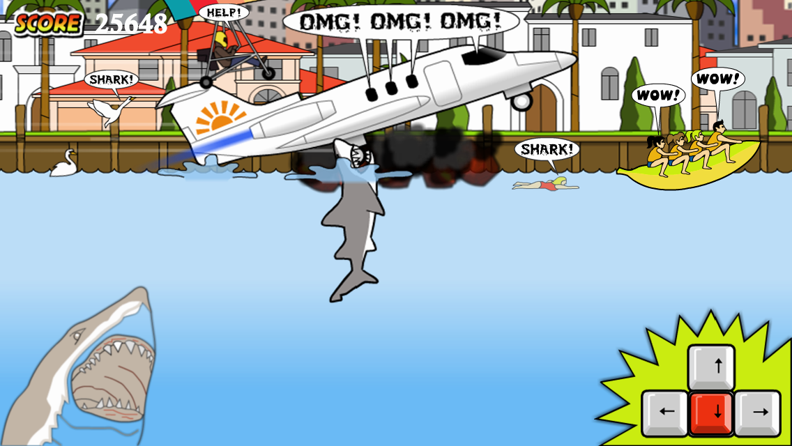 - Exciting game play, control shark to make explosions,and bring down airliners