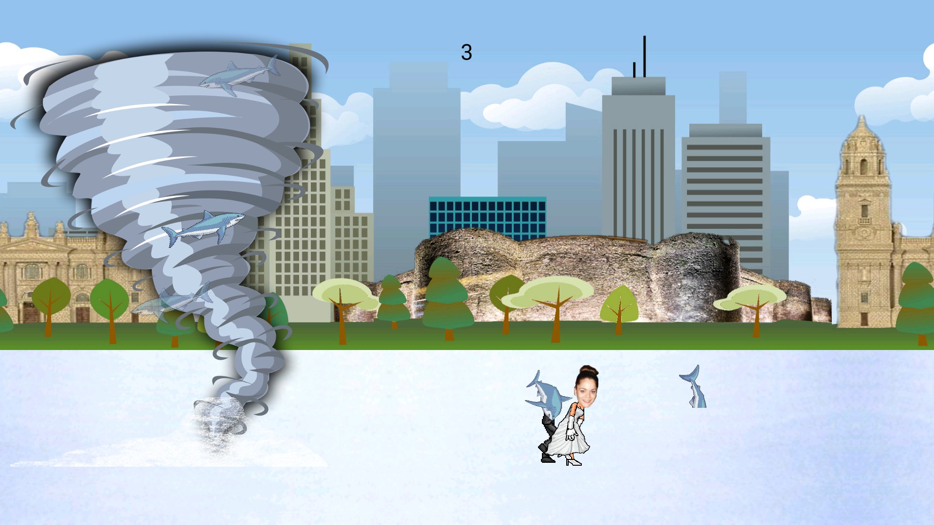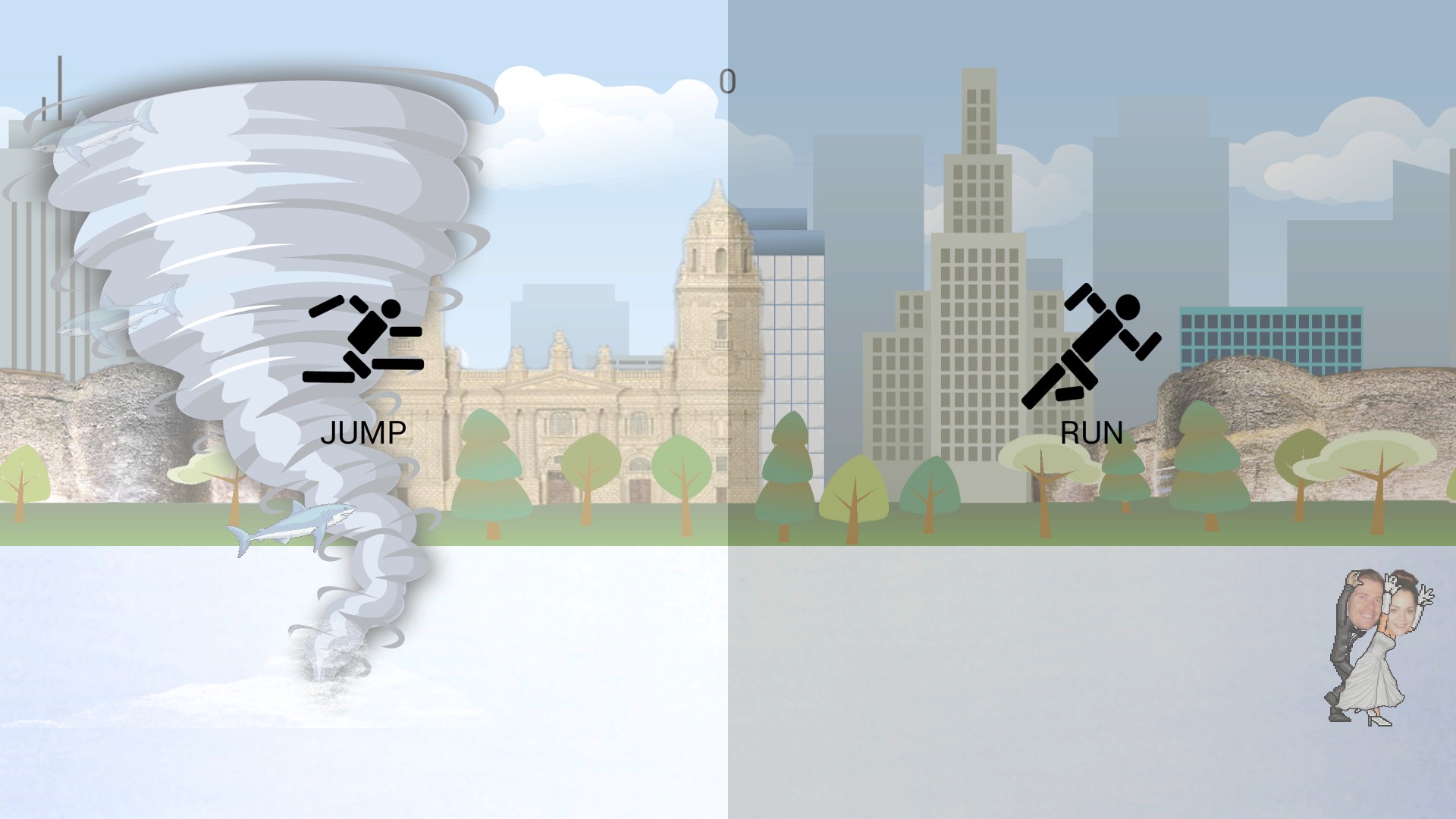 A Sharknado attacks Georgina & Laurence's wedding! Help them survive!