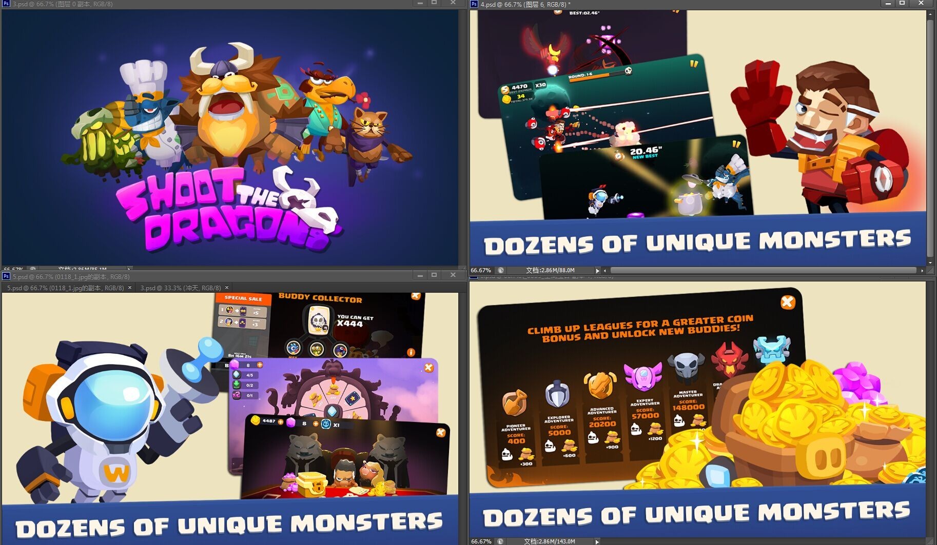 However, solving these problems also cannot justify making our game excellent. One of the biggest problems for the traditional Shump game is players become bored after longterm playing or end the game due to the high level of grinding through repeating waves of baddies, another level or even the boss. 'Shoot The Dragons' corrects this issue in several ways, first of all, we change the bosses attack style each week. This means every week players will face a different challenge! On top of this, players will receive abundant rewards each week after they defeat the Boss, the quicker the time the better the rewards they will have. Secondly, we have added a new system called 'The Lucky Palace'. In here players have the change to win many of the game's resources needed for upgrading either the character or his Buddies. However, your luck becomes a very important element under its roof.