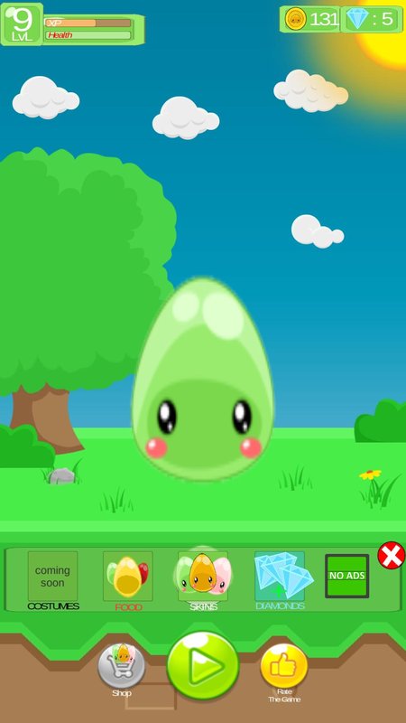 Feed and take care of your Slime: You can also take care of your slime just like you would take care of your pet. After playing some games with your slime , the slime will become hungry and he will lose some health, to heal him just simply buy some food in the store and feed him with some slime balls. When the slime is fully healthy again and fed you will be rewarded with some experience.