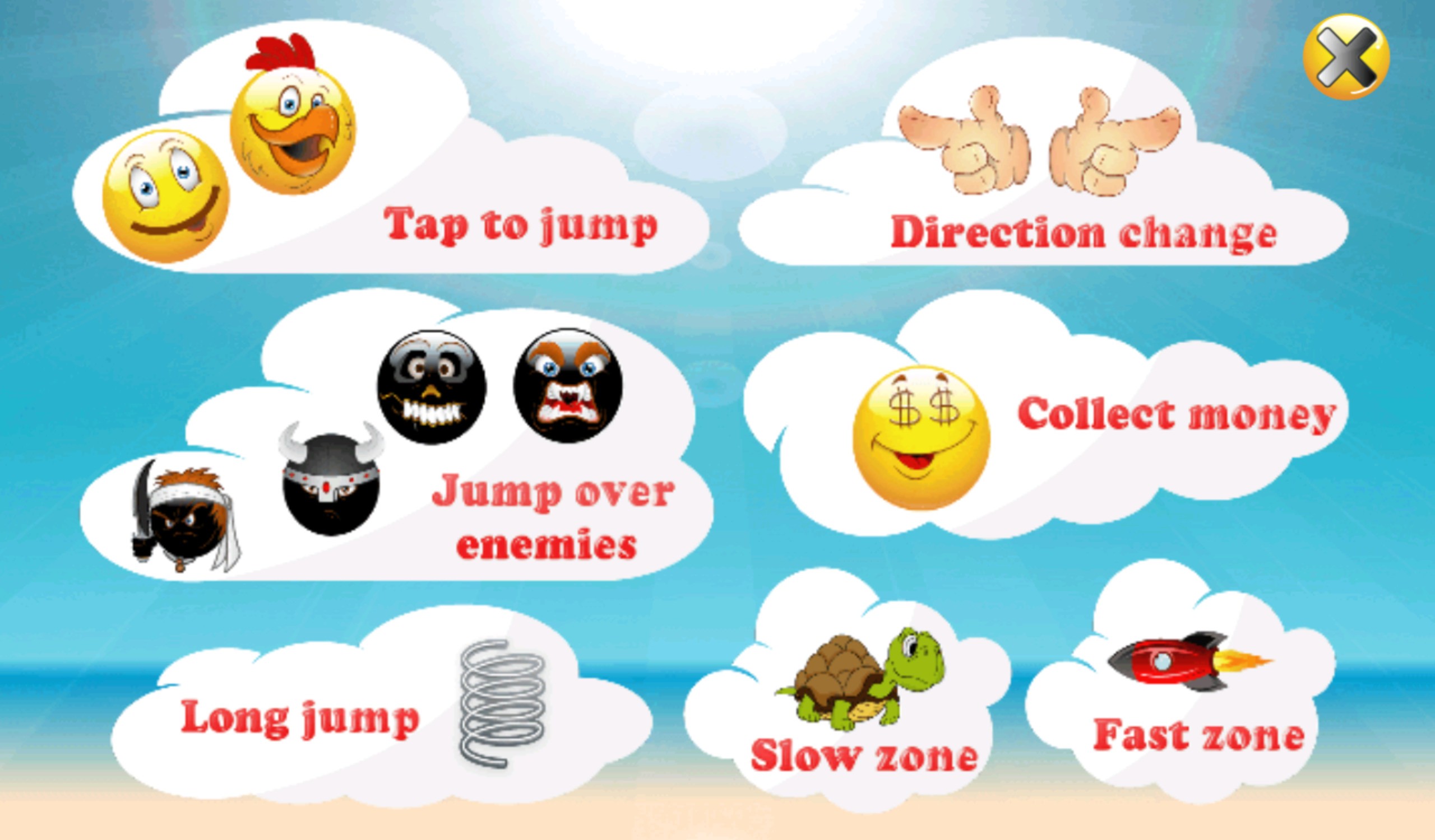 In this game the hero "Emoji" should collect money and jump over obstacles!