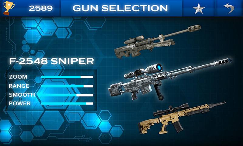 • Choose your famous SNIPER GUNS like, MODERN SNIPER RIFLE (MSR), UTR-130 RIFLE GUN and DRAGUNOV SNIPER RIFLE etc.
