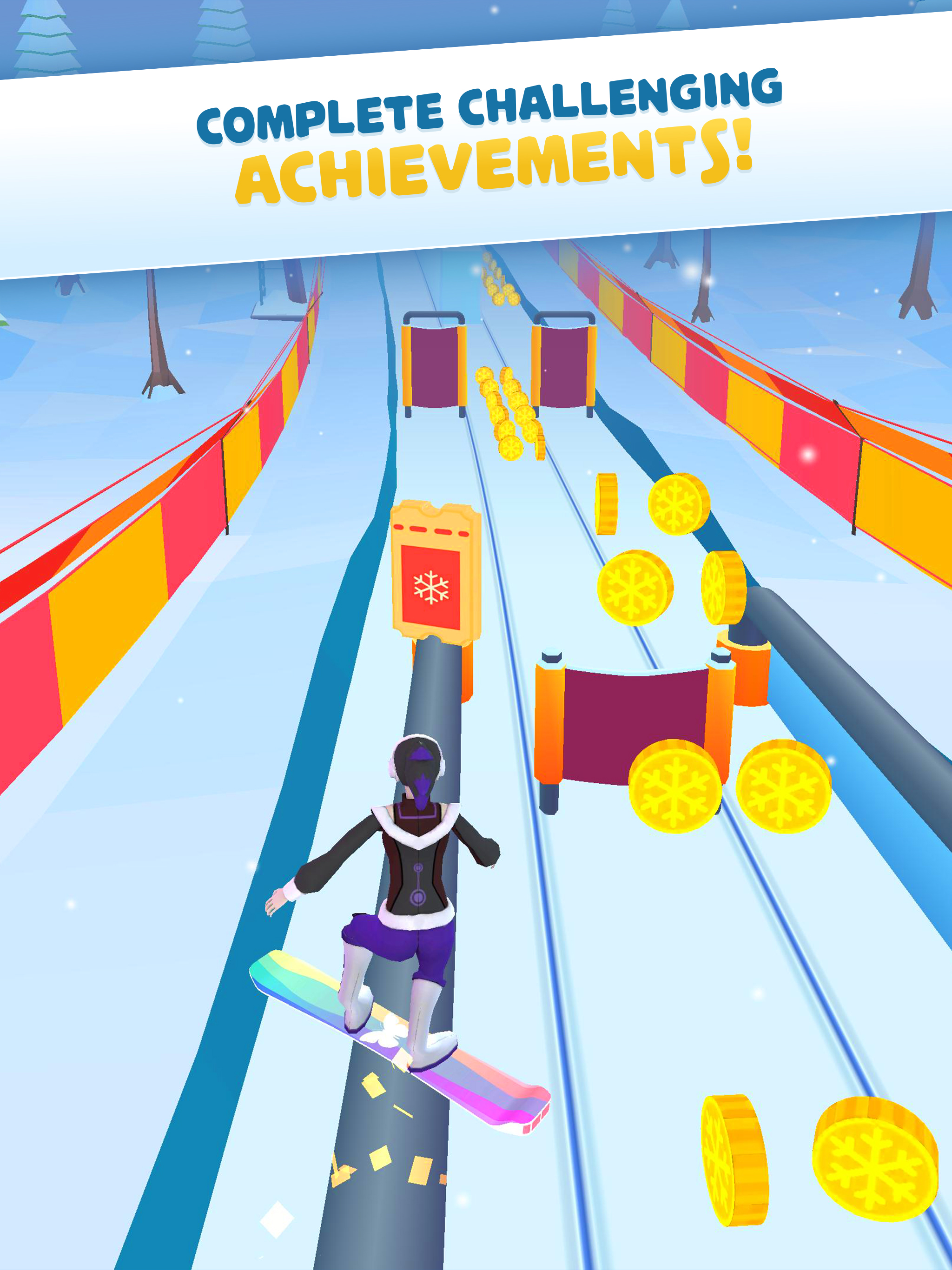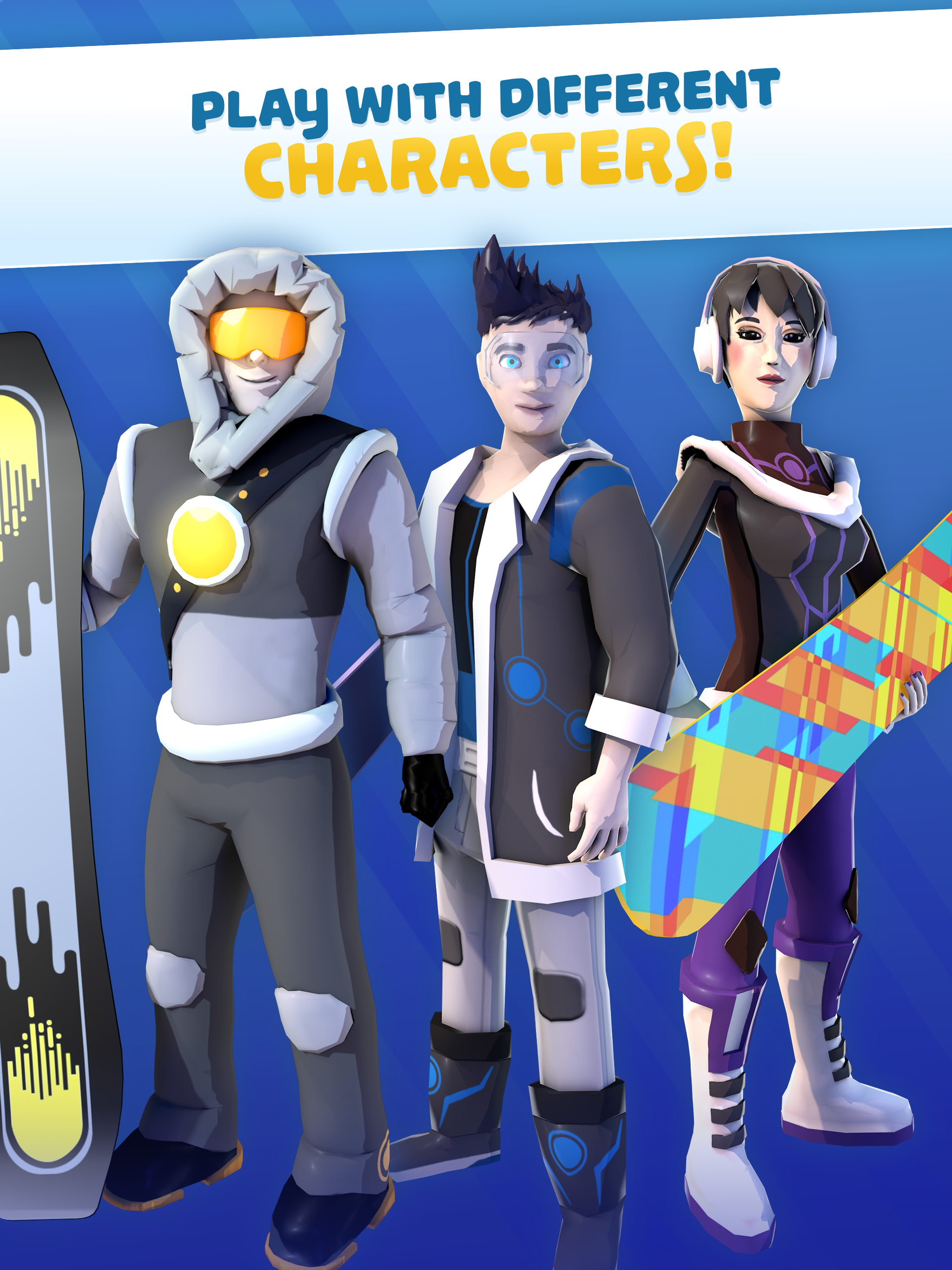 Hit the slope! Grind, jump and dash to reach maximum speed! Choose from a variety of uniquely crafted snowboards! Shred your way through countless beautiful worlds! Discover an alpine village, a magnificent forest or even rocky canyons.