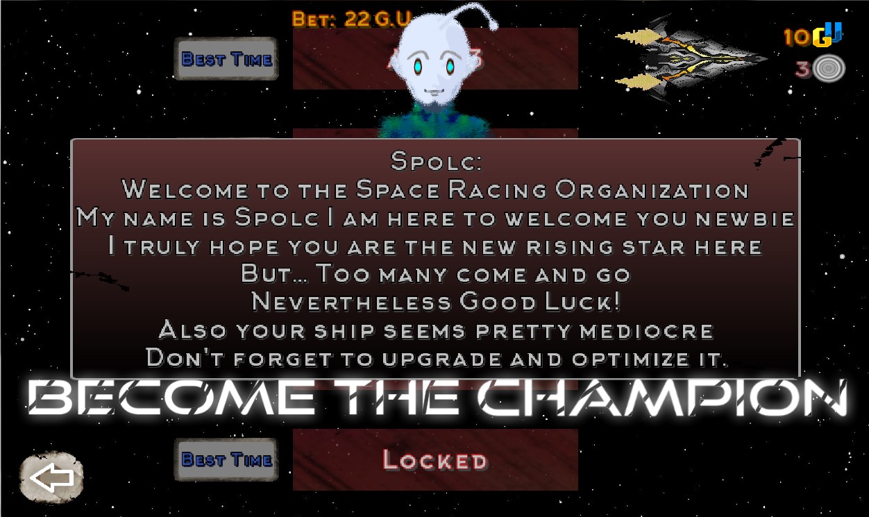 Travel to asteroid fields to salvage destroyed ships. Taking away their fortune and adding it to yours. UPGRADE and OPTIMIZE your ship to your playing style. Join the Racing Organization to climb their ranks while overtaking racer after racer.