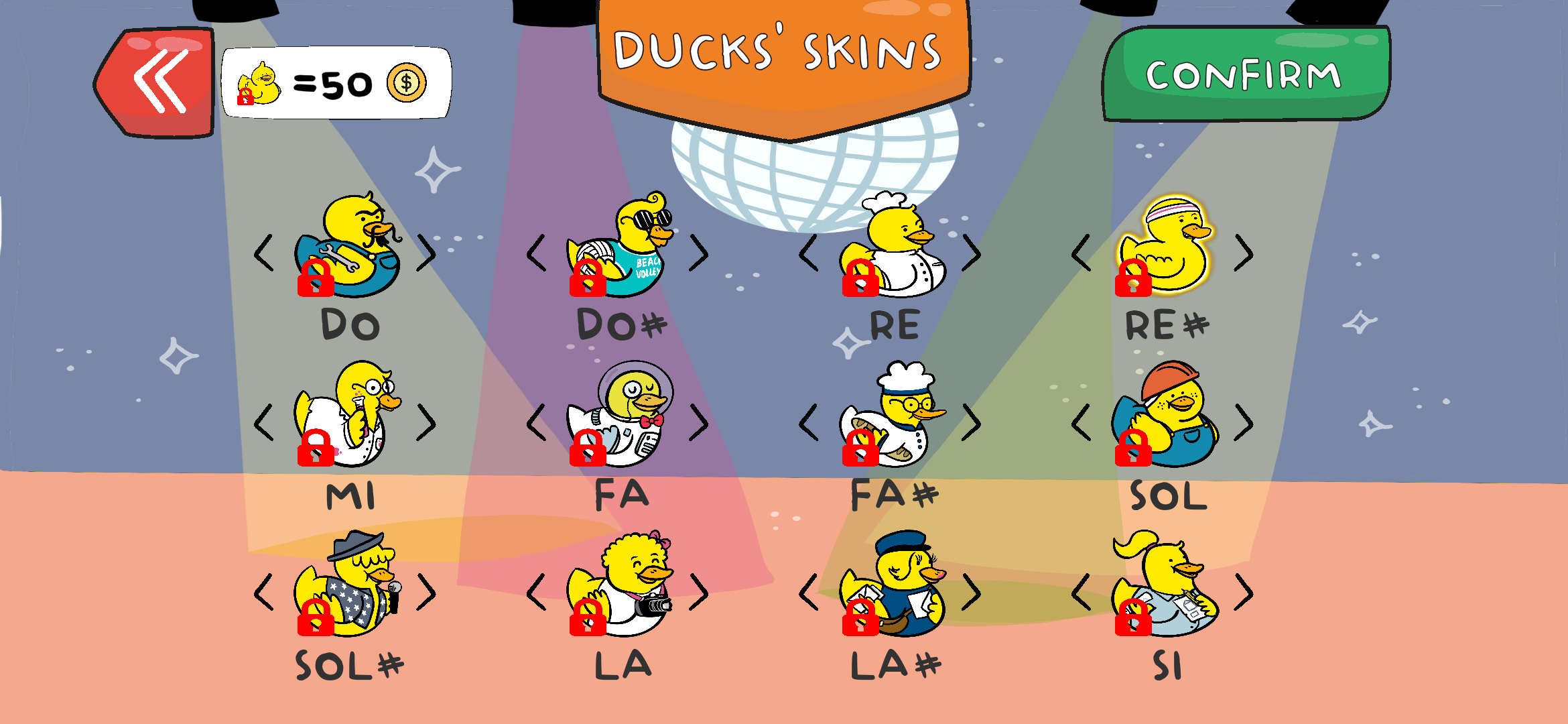 We have beautiful ducks that represent the 12 musical notes, try to catch the melody and reproduce with them in order, let's SQUEEECK together!