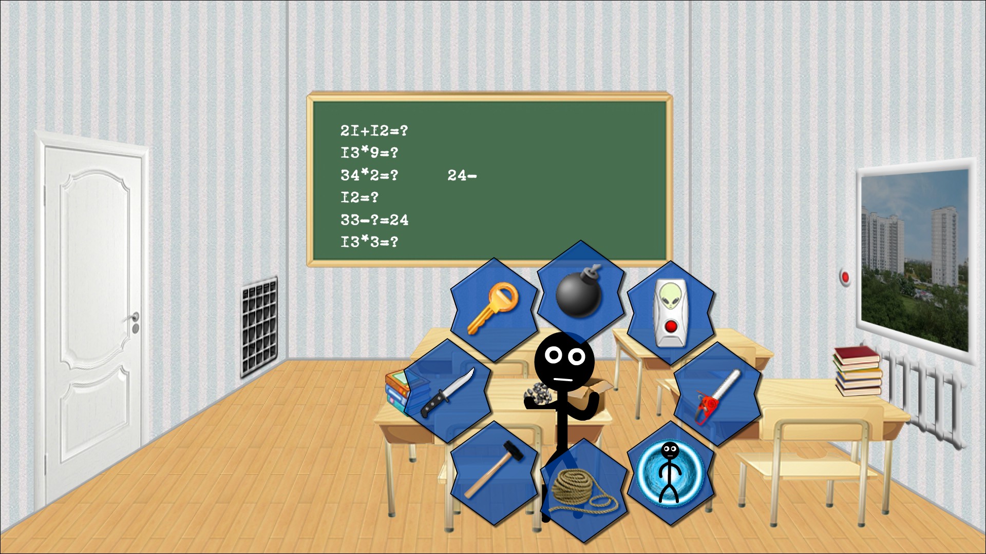 You're in college, you felt sad to be a slave of the system. One boring day once you have decided to escape from the college. Your task is to open the box on the desk and use the objects to escape. Here, as the school head to think what subject to choose. Some items are failing, while others winning. Including logic and brain, and then you are lucky and you get out of the system of peasant slavery. On the way to meet the enemy with whom it will be necessary to fight. It's certainly not just the enemy, but the real teachers, teach them a lesson! Enough teach false information, you need to run and build a business! Animation will delight you.