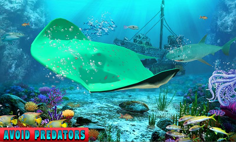 If you like sea animal’s games then this simulator is perfect for you. Watch one of the most amazing predators like killer whales or the great angry sharks how they hunt for other animals for surviving. Survive in sea against underwater beasts. You have to save your family and survive in this thrilling simulator. Hunt for your family and provide them meal on time. Increase your power skills, stamina and strategy to live the life of a stingray. Beat your rivals to get more score in this Action Simulator 3D so that you can easily unlock the other wild stingray.