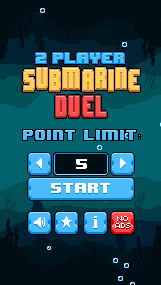 Submarine Duel let's you challenge your friend in a 8bit submarine battle. This 2 player game presents teams of submarines which try to push the underwater mines on the opponent to destroy him. During skirmish there are powerups floating which can rapidly change the course of the battle. Have fun!