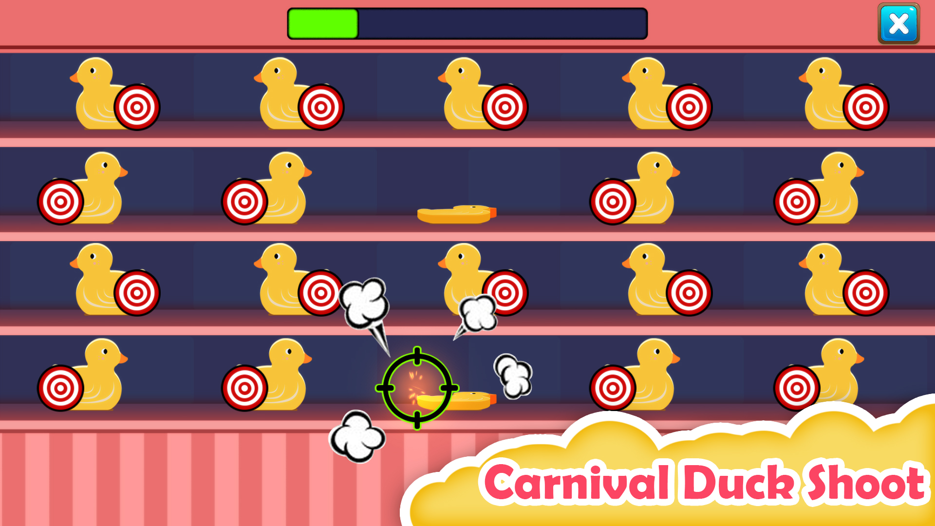 - Duck Carnival: Wait, Aim, and Shoot! Increase the point count by shooting the aimed ducks.
