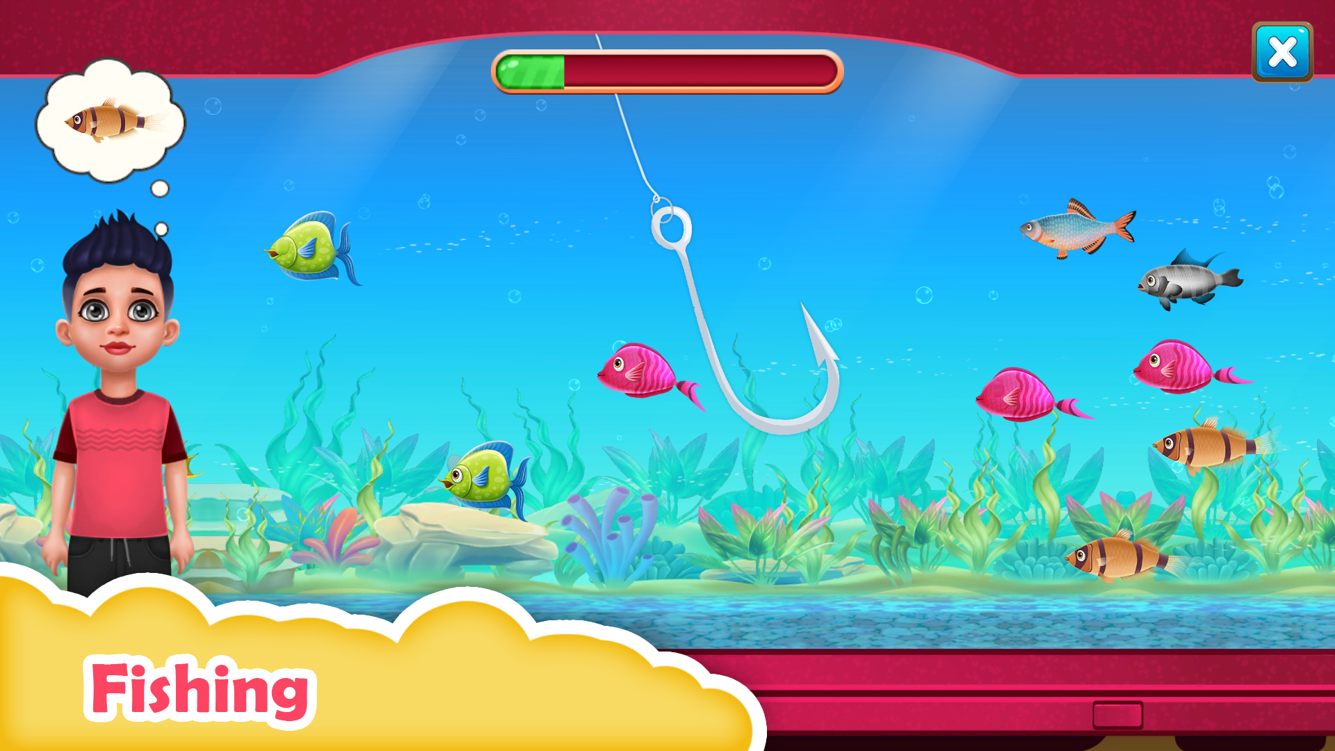 Fun Fishing: When a kid wants to go fishing but the closest pond is too far, what should we do? We have a solution! Now, kids just need to catch those fish from a variety of colourful fish that appear in the character's mind. Feel like having a fishing trip!