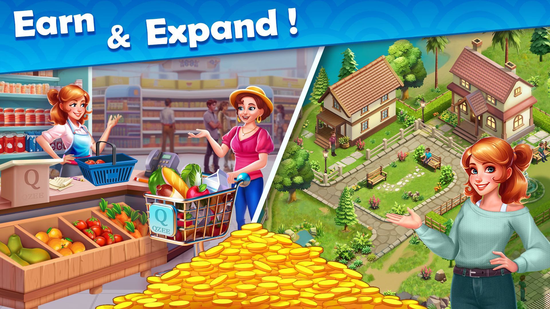 Play the supermarket store game, earn from shopping simulator, and use them to renovate the village house and decorate the garden in a mansion.