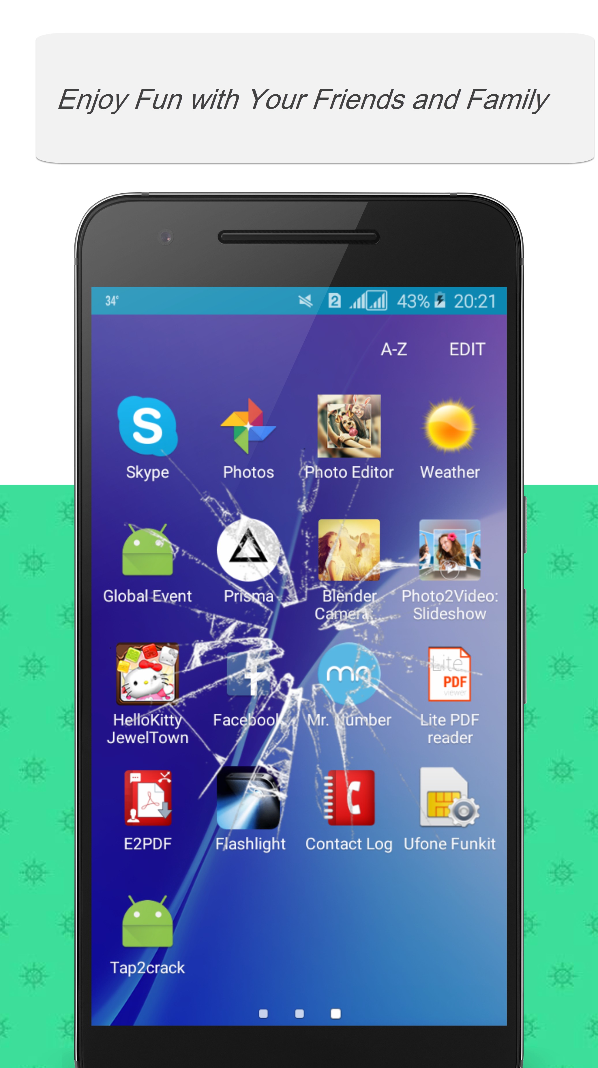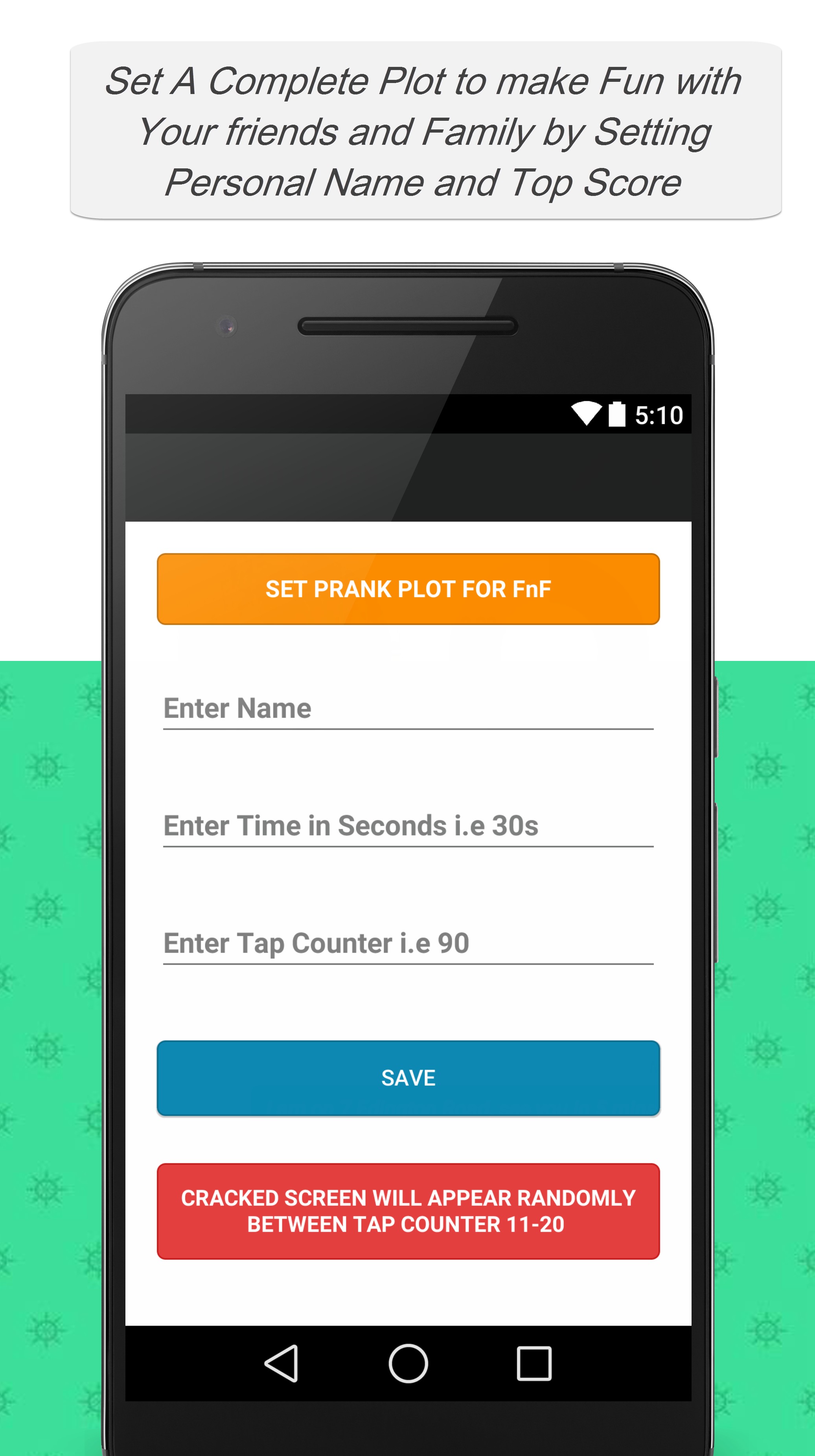 APP helps you in making fun by giving you feel of real tap to beat score. So when you will playing to beat the top score, crank screen will appear and all buttons will be disable. To make it more real, when user will press back button, crack screen will also appear on home screen which will disappear on pressing back button