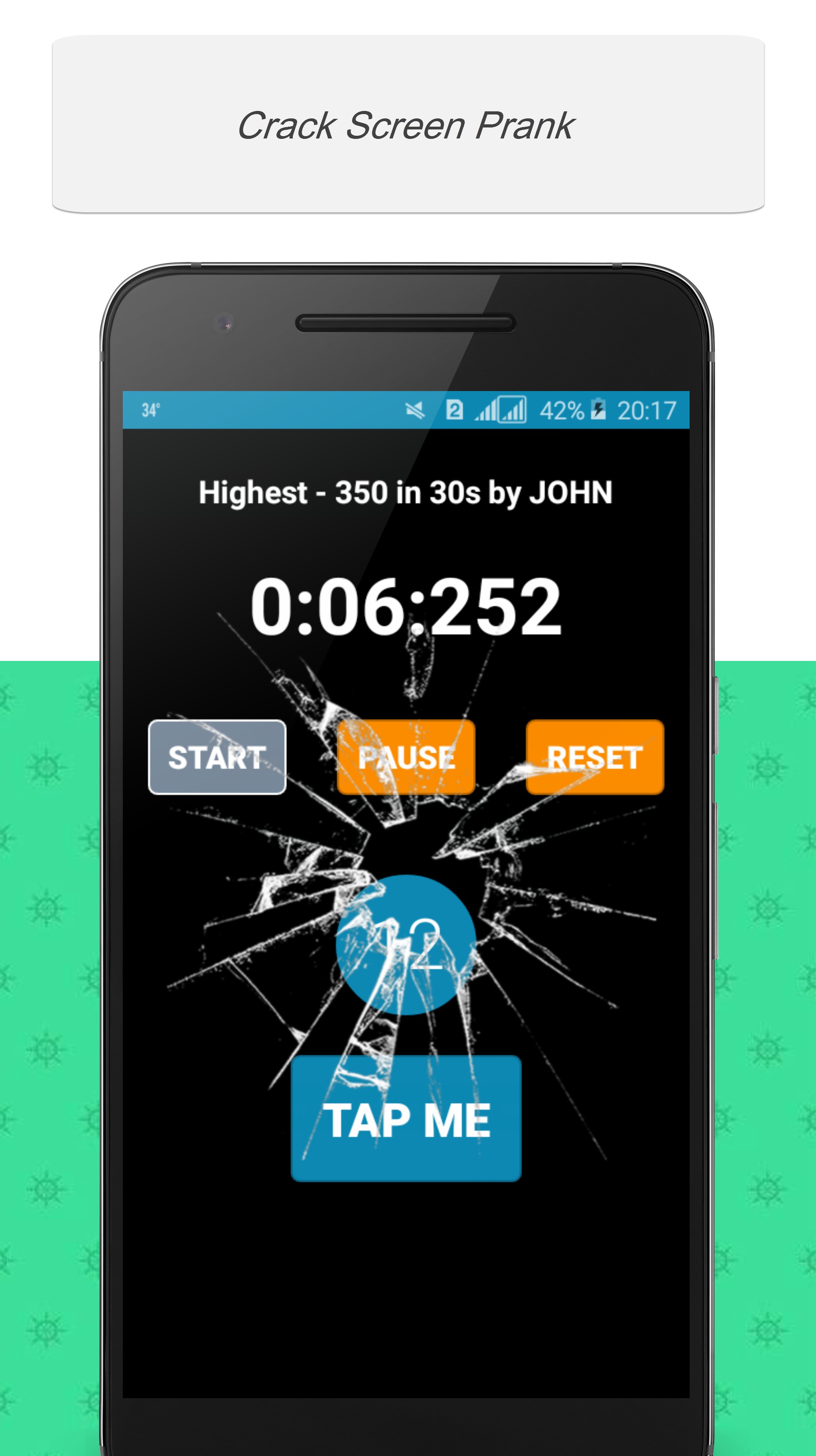 When they will tap fast to beat your score in 30 seconds, crack screen prank will appear randomly between tap counter 10-20 with crack sound