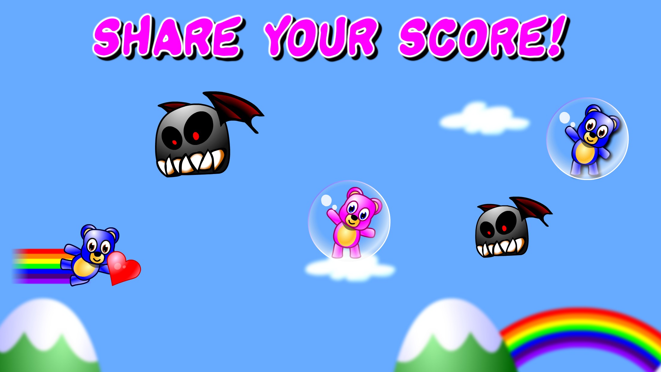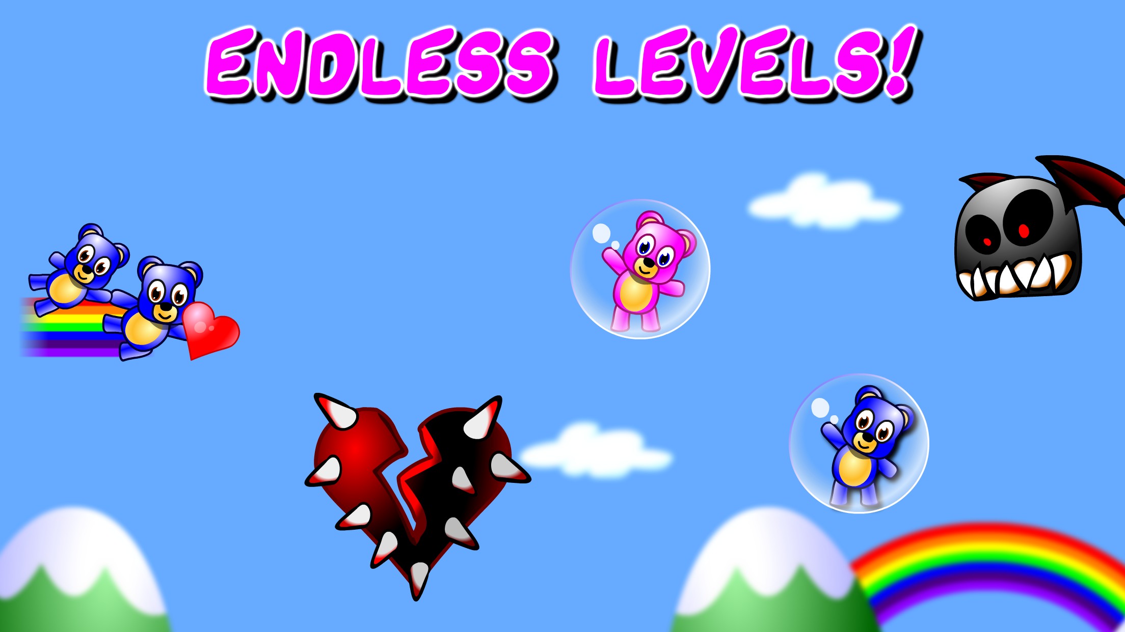 Tap and hold to fly up, release to fly down. Pick up teddy bears trapped in bubbles, and pair them with teddies of the same color.