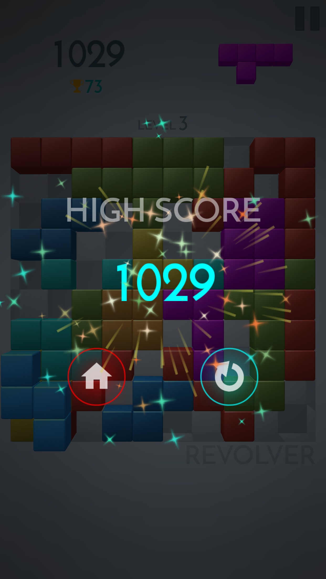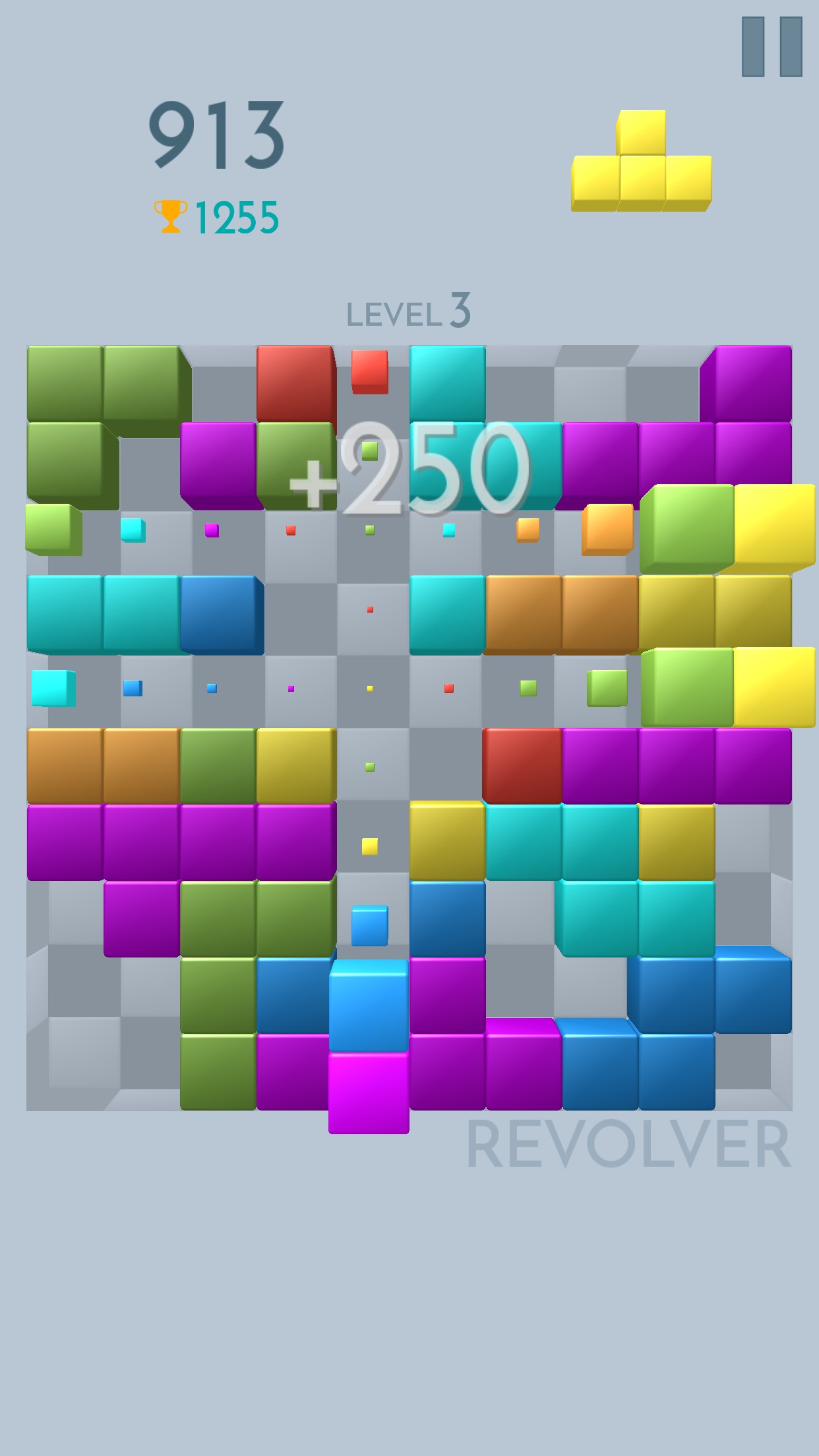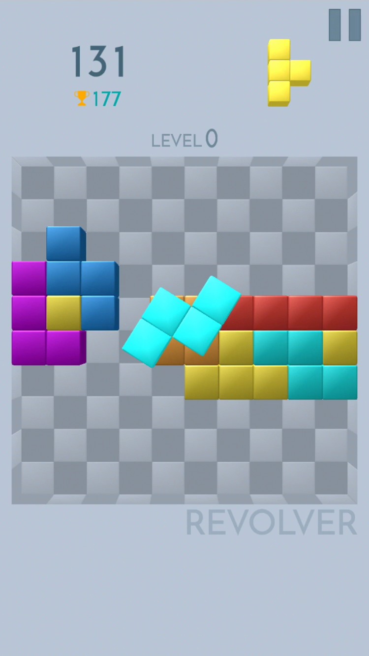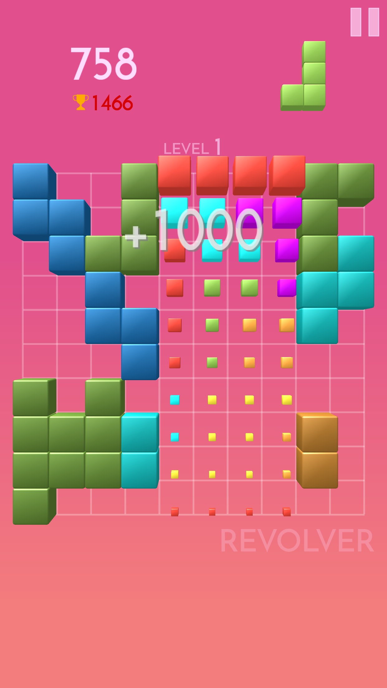 Puzzle has two play modes. Revolver mode is classic retro brick game with block rotations. Challenge mode is pure hard core puzzle: no rotation, only classic tetromino shapes