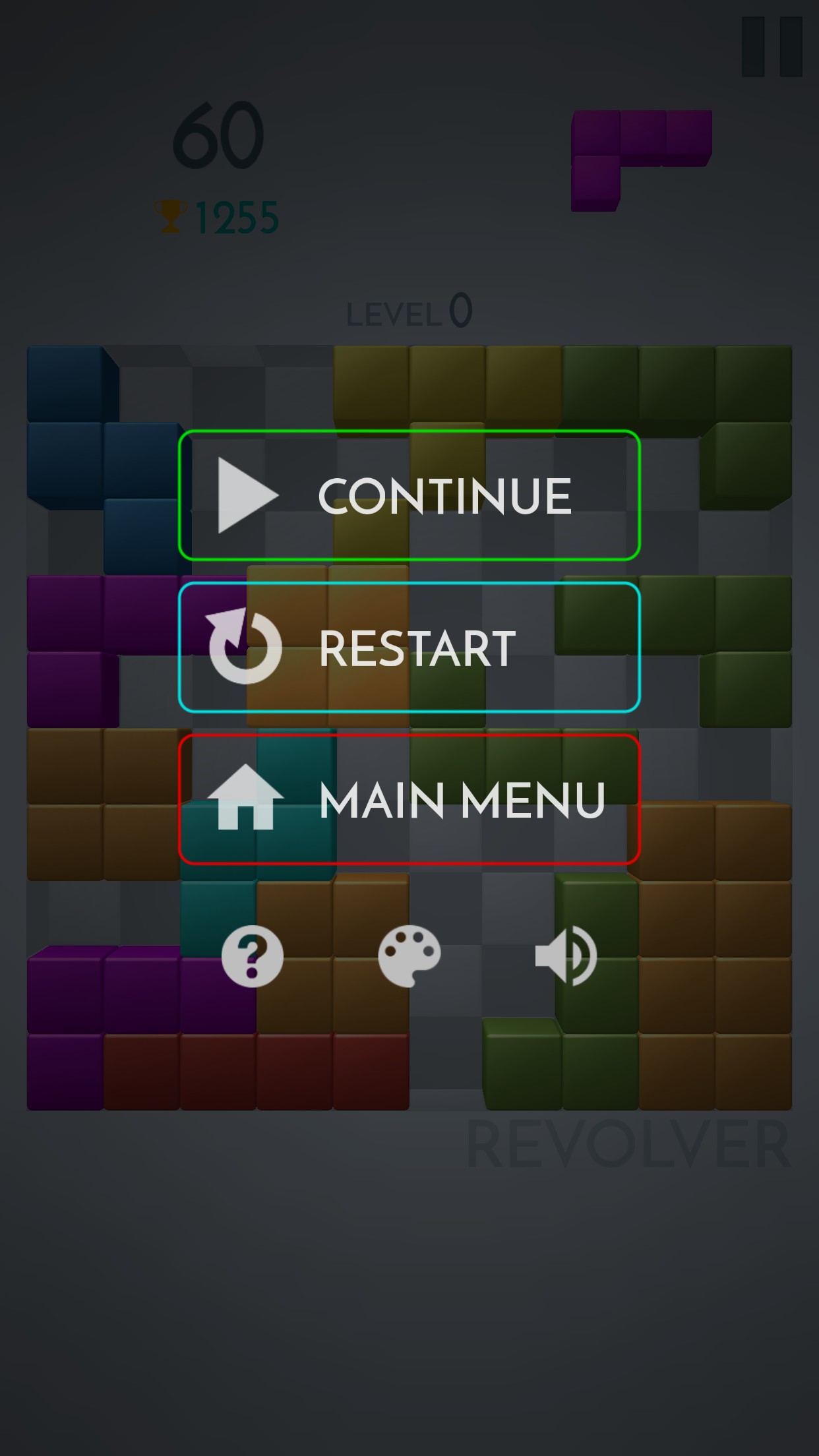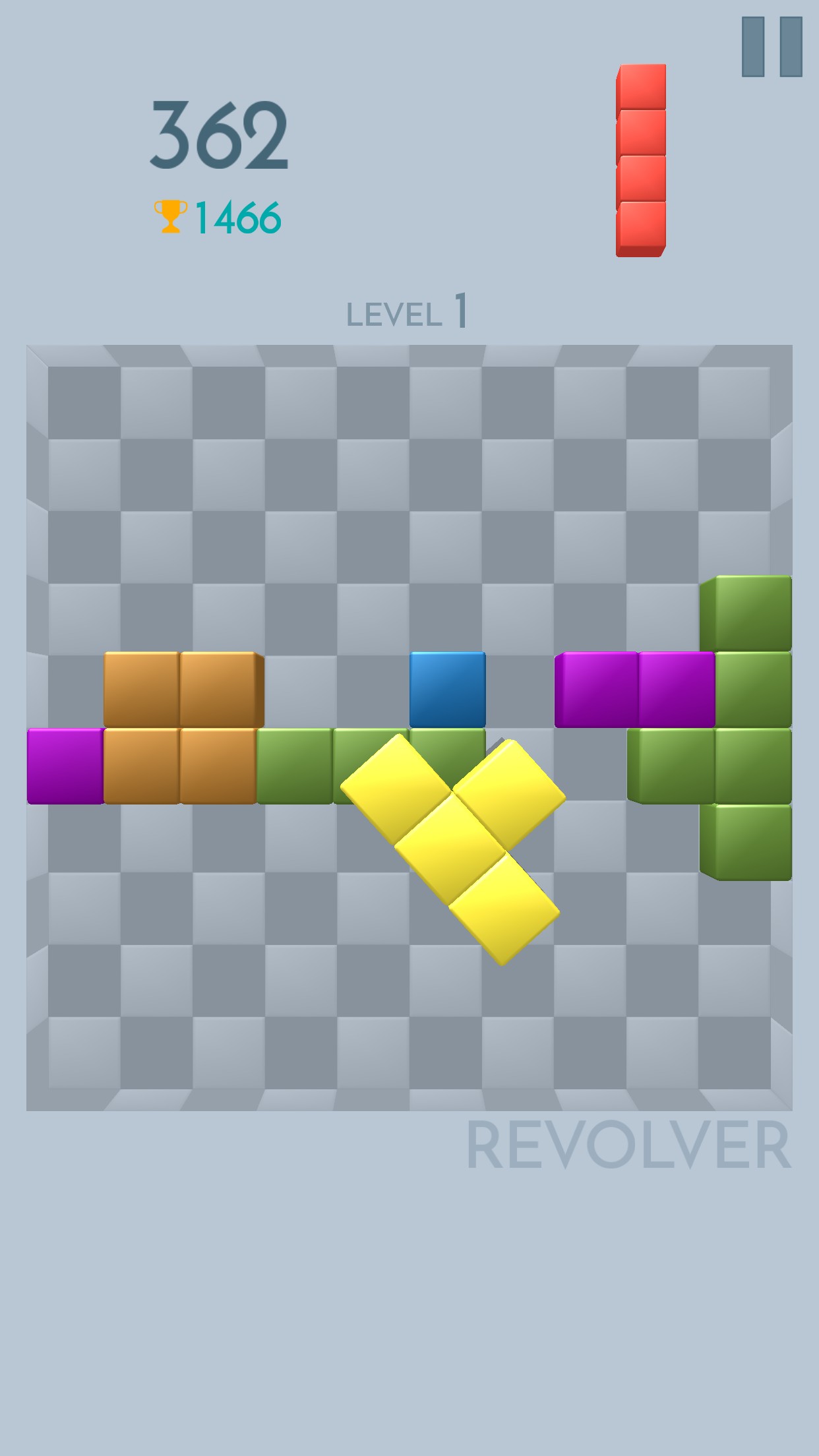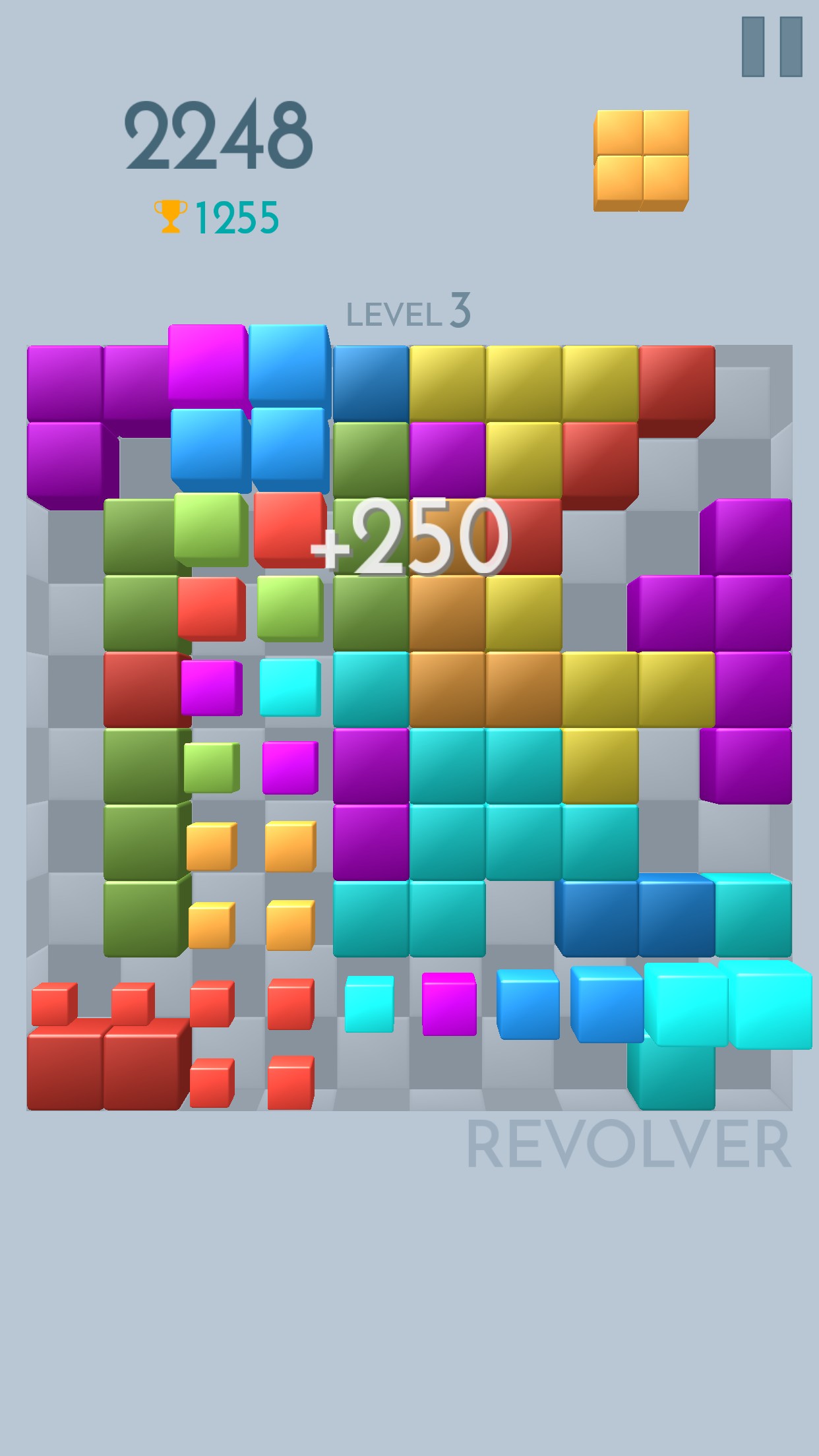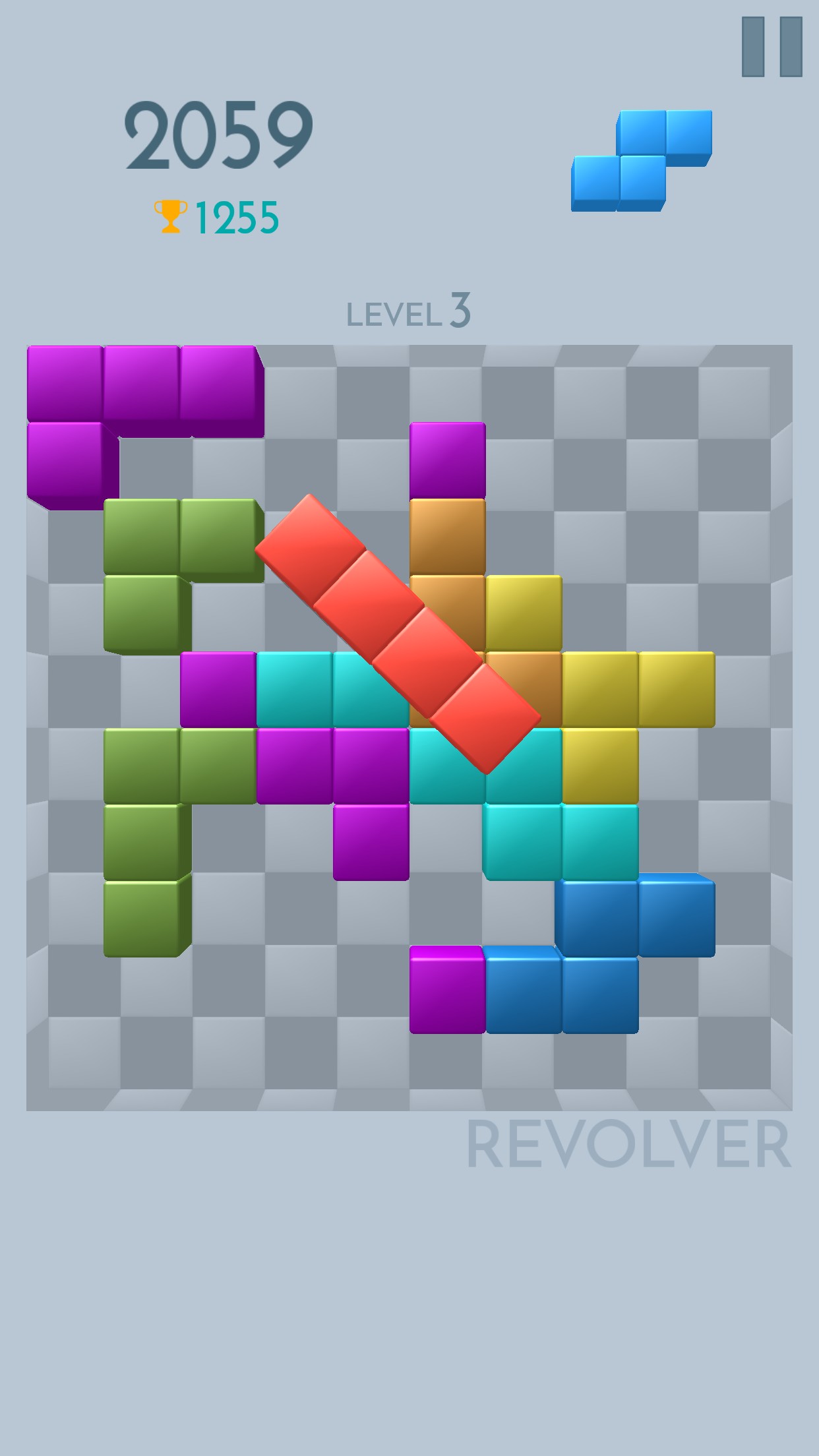 Puzzle has two play modes. Revolver mode is classic retro brick game with block rotations. Challenge mode is pure hard core puzzle: no rotation, only classic tetromino shapes
