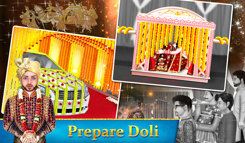 A doli is used to carry & bring bride to the mandap. It's a cot suspended by four corners from a bamboo pole. Decorate it with accessories in this Indian Wedding Games & Doli Ceremonies.