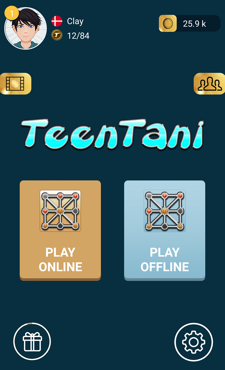 Three Men's Morris (Teentani) is a old puzzle board game. it can be played between two players. To play Three Men's Morris online with friends, Login with your Facebook account and play the challenging Three Men's Morris Board game. Three Men's Morris online puzzle game to play with Friends and game buddies. Based on puzzle board game, its really good and challenging to bet your friends online. The Three Men's Morris know as Teen Tani in sub continent is similar to Tic Tac Toe in nature and rules but its more joyful then the traditional Tic Tac Toe and its more challenging as it have some smart move to play wisely. Play and Improve your logical thinking with Three Men's Morris (TeenTani) online and train your brain