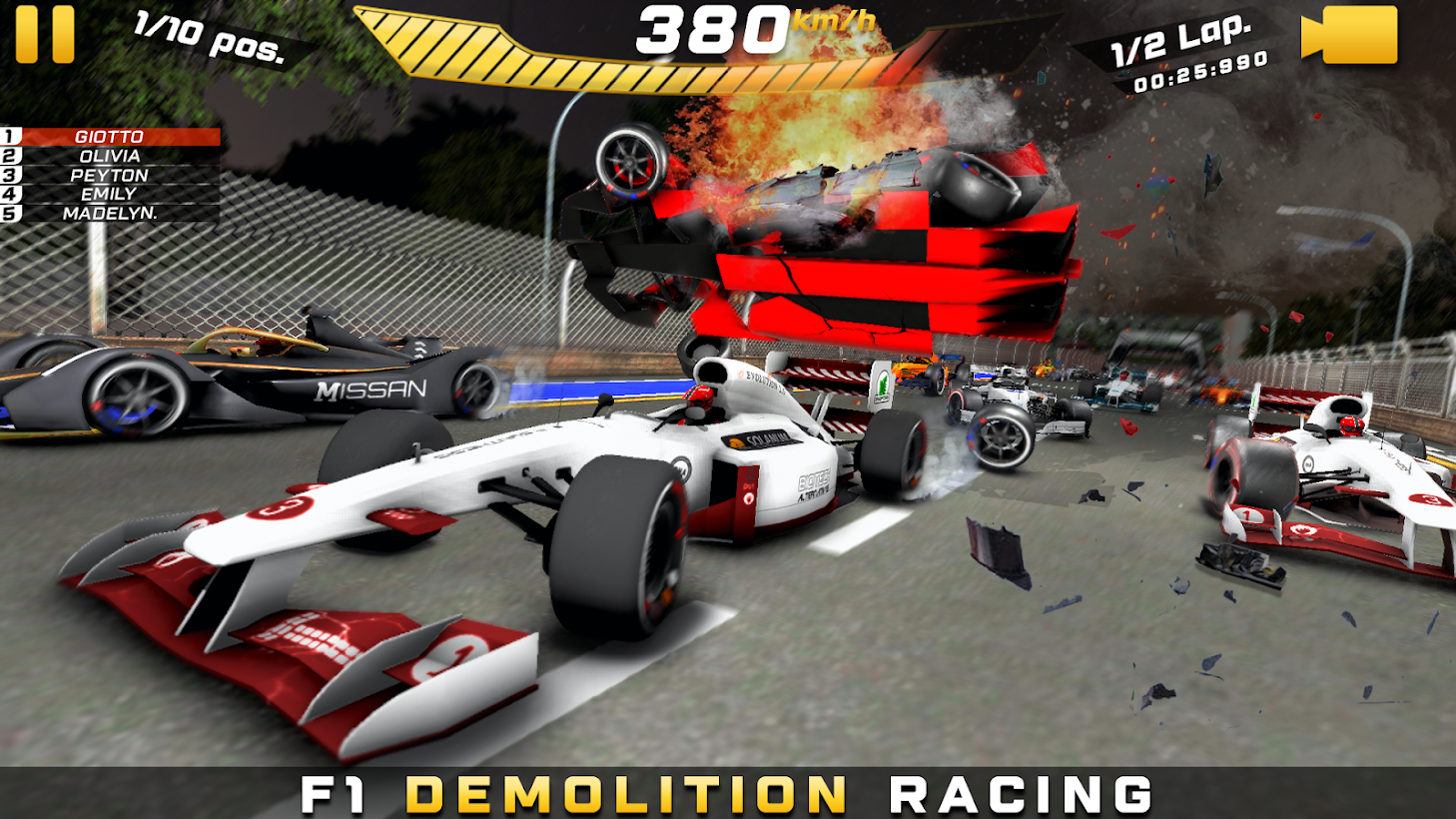 Forumla top speed car racer has an additional mode along with career mode. For example, demolishing the competitor by chasing competitor driver and hit your car in another car. This feature differentiates this game unique to others. Slow motion effects are added when car demolishes.