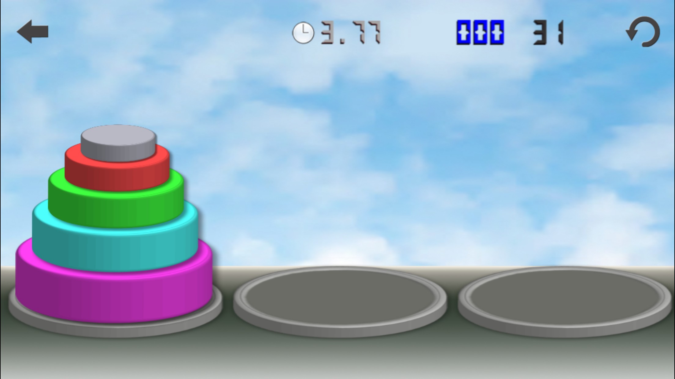 The game consists in changing the discs tower 1 to tower 3 on the condition that you can not move more than one disc at a time, and can not put a large disk on a small one.
