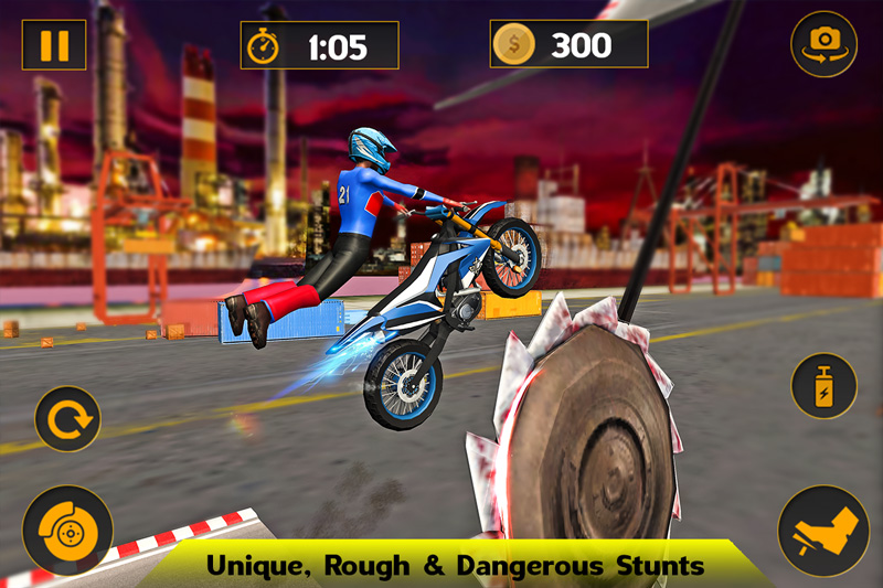 In motorbike stunt master 2019, you need to accelerate your bike to the highest speed, survive without falling off the path and reach the finish line within the shortest time to be the top. Experience the realest physics to drive on insane tracks. Every level is more challenging and exciting than the last one. Marvelous eye catching graphics to will provide you with the best motorcycle game experience. Ride through different checkpoints before you arrive at your destination. Follow the map to arrive at your destination. Nitro boosters are placed at various places to help you drive fast on impossible stunts ramps. In this racing mania 2019 drive as much as you can to earn coins and to upgrade your super bike, trail bikes & dirt bike range.