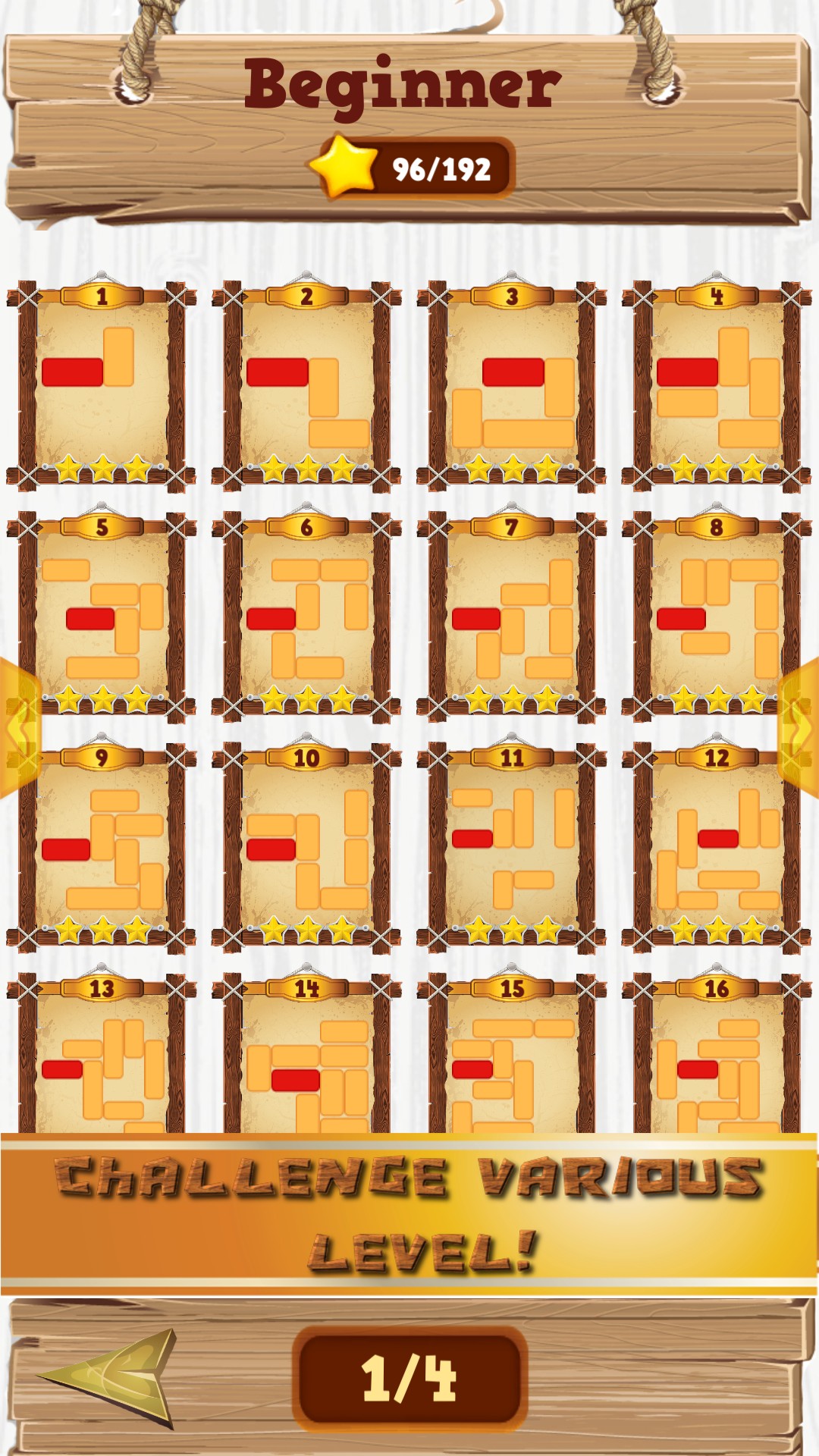 The goal is to unblock the brown block out of the board by sliding the other blocks out of the way, unblock it with the minimal moves. Unblock Wood Bar comes with 4 difficulties ranging : Beginner, Advanced, Master and Expert. There are 256 puzzles in total, download it for free and get ready to unblock the block! If you enjoy puzzle strategy games and color block games you will not be disappointed by this powerful game we have developed.
