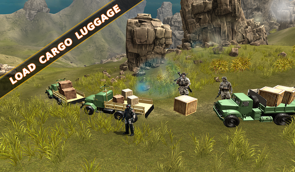 Enjoy hill climb cargo truck driving with multiple army vehicles. Drive army transport truck through dangerous off-road hill tracks with sharp turns. Be careful while driving; avoid dropping or breaking aid boxes. You need to drive army cargo truck also to places where army train and rescue chopper cannot go. Transfer safely military cargo and first aid box in army transport truck simulator. Balancing the US army cargo truck driving is very important. One sharp turn can roll down the load. Drive army cargo truck like an expert cargo truck driving and transport military cargo to the destination in given time period.