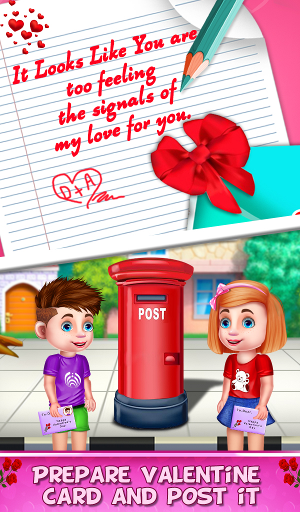 During chatting the boy told the girl about the planning for the next valentine. The boy wants to make a Valentineís Day invitation card. Help him out with this card making game. There will be so many tools to make an invitation card in this valentine day party game. Help him to post the invitation card. Then help the boy to make decorations in the room, to make gift box decorations and to prepare a beautiful flower bouquet for the girl. There will be also cake making view where you need to help the boy in cake making. Then there will be a dinner date between girl and boy, cake cutting and also there will be an enjoyable DJ party for them. So play this love game and complete all the romantic things for the valentine couple.