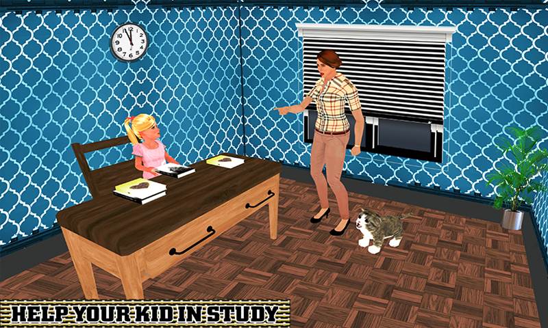 Pet house family cat fun is an entertaining game for all virtual simulation game lovers and you can play as cute girl to perform different tasks like study while playing this family adventure simulator. Let’s see if my family kitten games have the potential to help Virtual Mom clean the messy sweet home and take care of a cute girl from mice who are wandering in the kitchen.