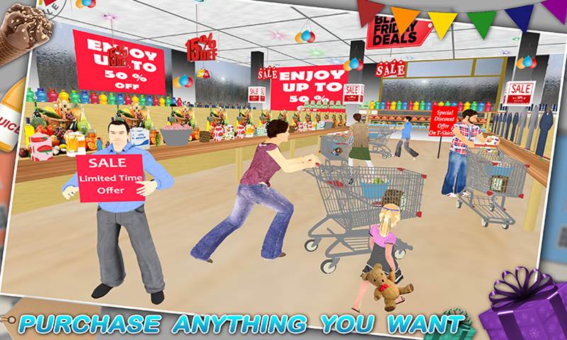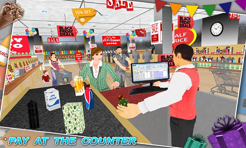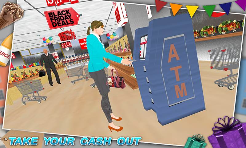 In Virtual Supermarket Grocery Clerk Simulator Withdraw money from ATM, Chose the shopping cart and pick products from the Store shelves at free superstore shopping center as a super mom in meat store fun emulator games. There are different virtual player in this entertaining simulator.