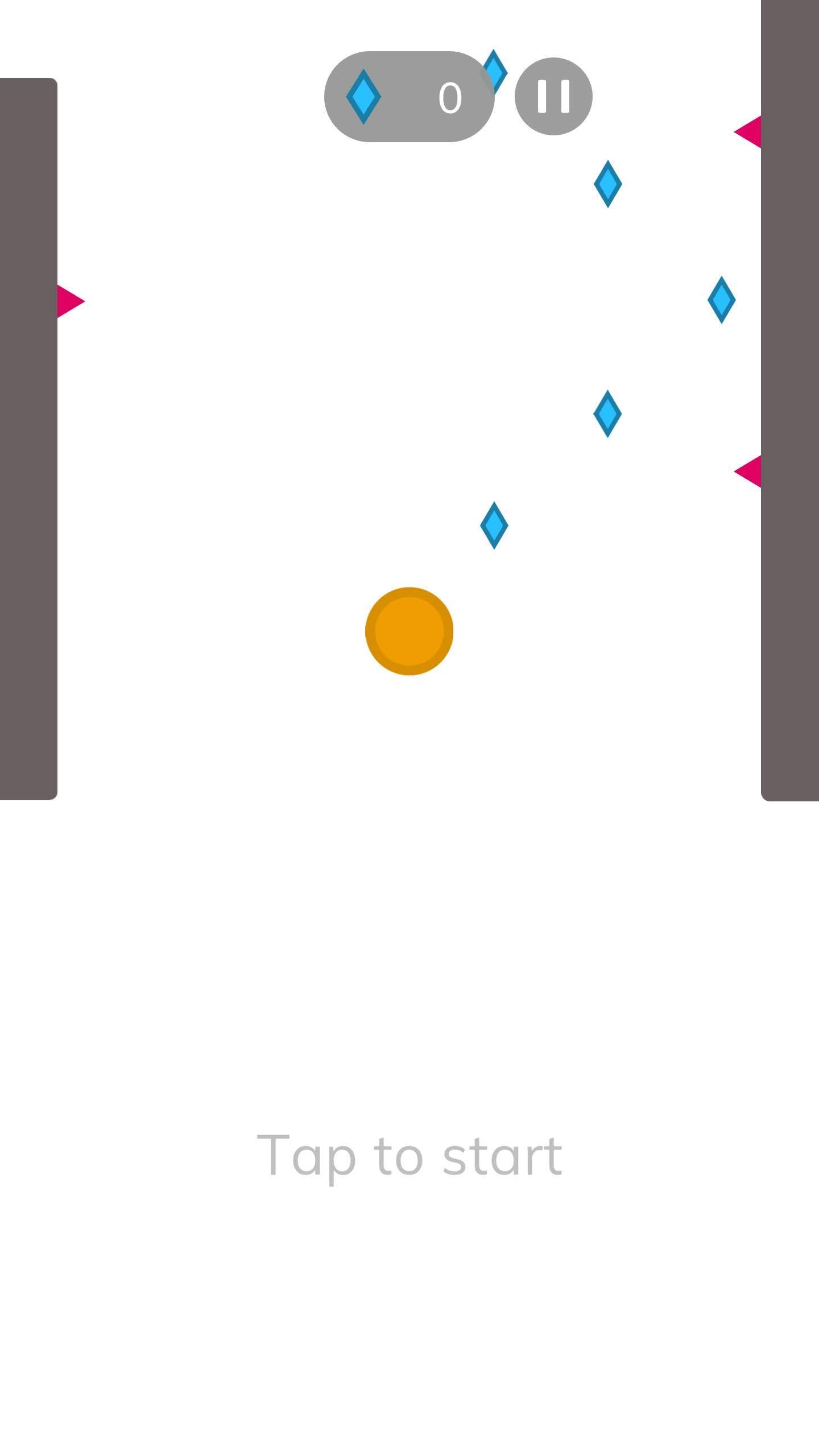 The ball bounces left and right, but you have to move it upwards. Stay on the walls to survive. Bounce around obstacles, and collect diamonds!