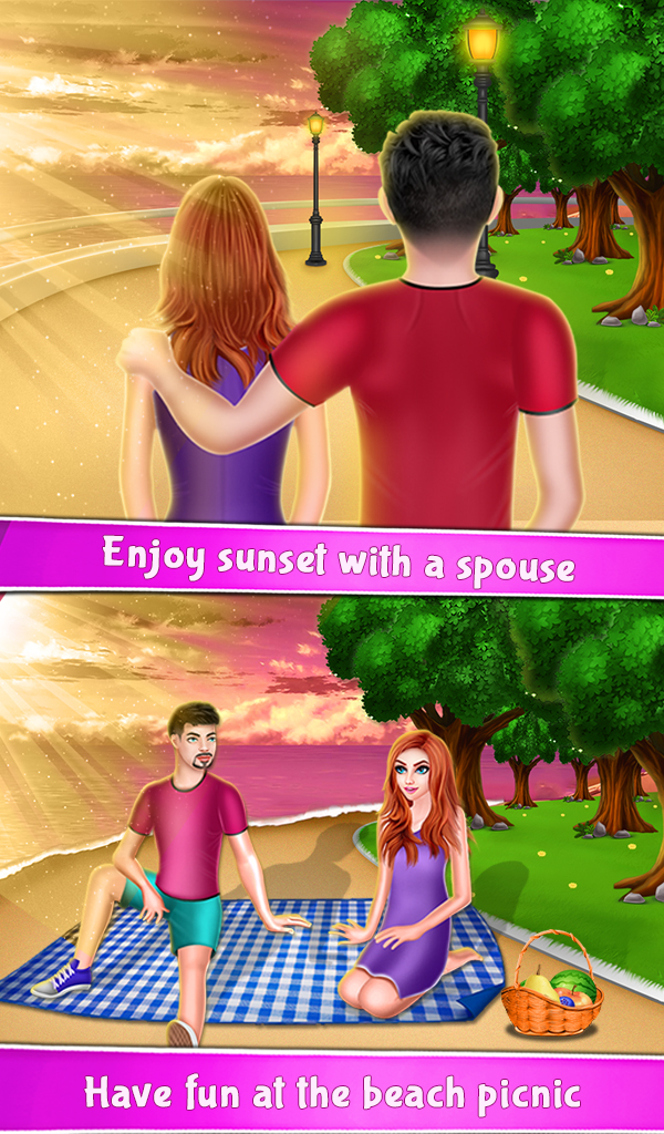 Eve and Shelina are husband and wife. Both are happy with their married life. But one-day Shelina finds Eve talking to her ex-girlfriend. She doubted Eve and they got some arguments on that. Day by day, distances are becoming longer between them. So they decided to sort out this issue from a counselor. The counselor gives the solution to them after that Shelina tried so many things for Eve to make him happy. After some days, Eve forgives Shelina for her doubt. After that day, Eve and Shelina both do lots of things to make another one happy. They go to watch a movie and also went in a fun fair. Both are having an amazing feeling of falling in love with each other again. This journey is full of romantic moments which will give you goosebumps and lots of entertaining tasks to make your spouse happy. Play this marriage life game and don't forget to share your review.