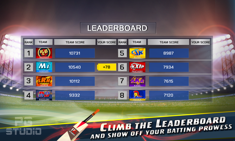 Show your batting skills towards the score and Help your country to reach at Top. Play against the 18 teams, including Afghanistan, Australia, Bangladesh, England, India, Ireland, Newzealand, Pakistan, South Africa, Scotland, Sri Lanka, United Arab Emirates, West Indies, Zimbabwe, Nepal, Netherland, Kenya, Canada!