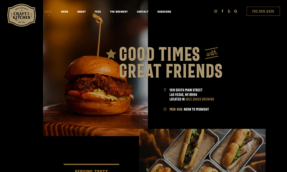 Arts District Craft & Kitchen is a restaurant inside of Able Baker Brewing that serves quick, tasty bites with unique flavors from around the world. The website is a collaboration between Damn Good Brand and ByMattLee.