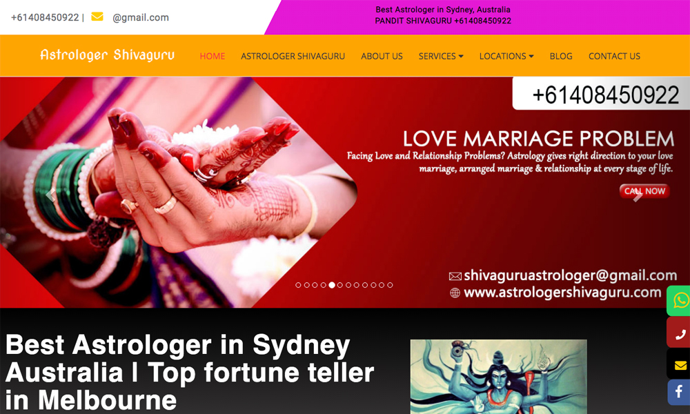 He is renowned Vedic Astrologer in Sydney who has more than 15years of experience in the field of Astrology. he is expert in services like palm reading, Blackmagic removal specialist, spiritual healing, psychic reading, Horoscope reading, fortune teller, he had deal so many problems like Husband wife disputes, love marriage problems, court cases, family problems etc. Now presently Astrologer Shiva guru is one of the Best Astrologer in Sydney with satisfied customers of more than 600 in past one year. he has offered permanent solutions to many people in Australia. now its your turn to get solutions for all your problems.
