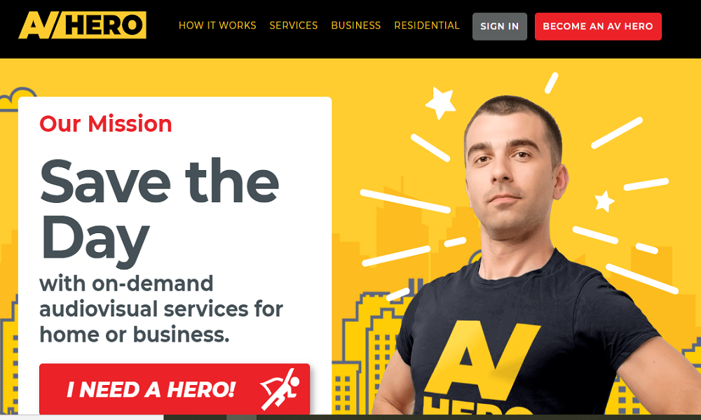 AV HERO springs into action! First we ask you to describe your request. Then, you’ll either create a new account or sign into your existing account. Confirm your location and contact information, submit the request, and we will connect you to a local AV HERO. Once connected, you can contact your HERO over the phone to discuss details or just wait for them to arrive at your specified time. AV HERO charges a flat rate of $75/hour, with a 1-hour minimum, and you’ll always have the opportunity to approve everything before you pay.