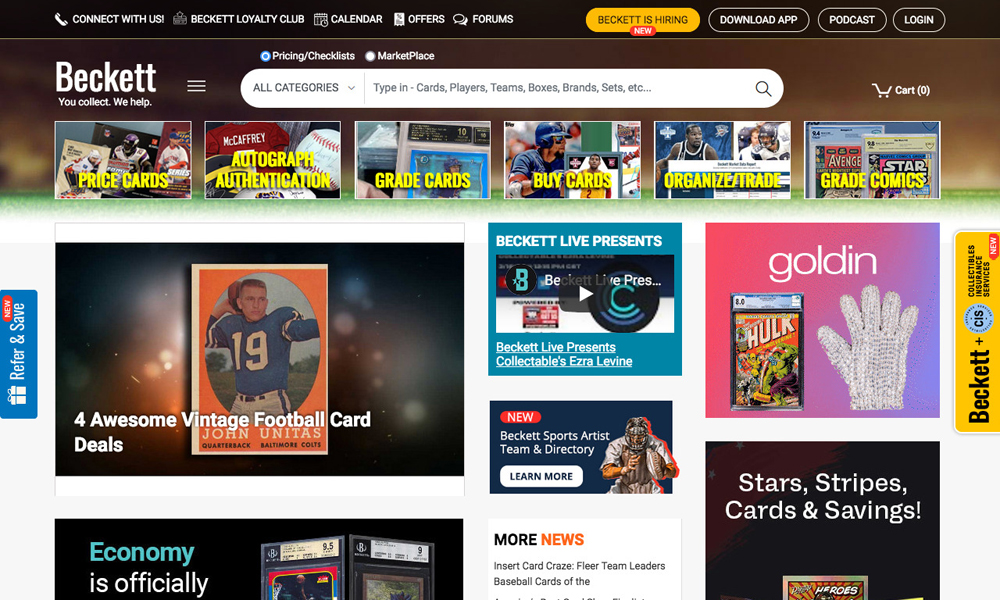 Beckett offers collectors the latest hobby news and instant access to the worlds leading trading card database to organize, price, buy, sell and trade.