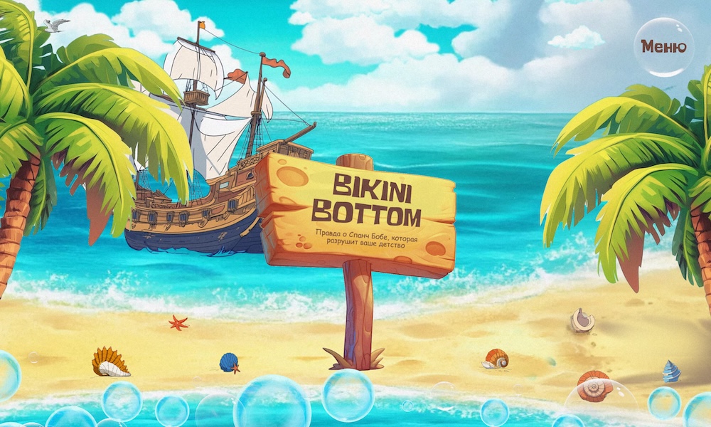 A creative project about the city under the water Bikini Bottom. Everyone knows the positive and a little primitive cartoon about SpongeBob and his friends, who live in Bikini Bottom. But is such a carefree story in the inhabitants of Bikini Bottom? Fans have repeatedly noticed unusual and ambiguous moments in the cartoon and have already managed to build a large number of theories. On the site I will tell the most vivid of them.