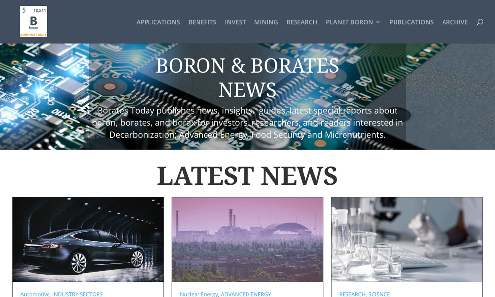 Borates Today publishes news, insights, guides, latest special reports about boron, borates, and borax for investors, researchers, and readers interested in Decarbonization; Advanced Energy, Food Security and Micronutrients.