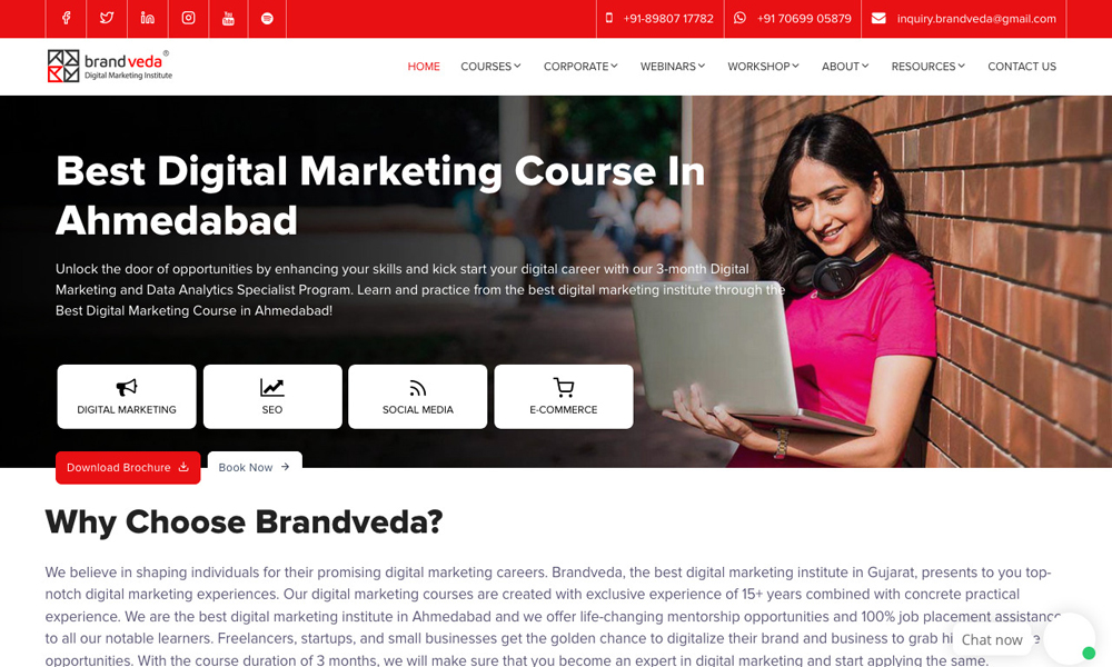 Brandveda, the best digital marketing institute in Gujarat, presents to you top-notch digital marketing experiences. Our digital marketing courses are created with exclusive experience of 15+ years combined with concrete practical experience. We are the best digital marketing institute in Ahmedabad and we offer life-changing mentorship opportunities and 100% job placement assistance to all our notable learners. Freelancers, startups, and small businesses get the golden chance to digitalize their brand and business to grab higher revenue opportunities. With the course duration of 3 months, we will make sure that you become an expert in digital marketing and start applying the same.