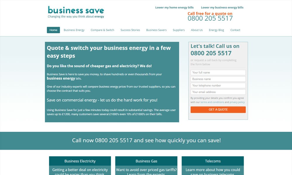 Business Save are an energy broker specialising in Business Energy, the website was built in Wordpress, with the mindset to give people the ability to request a quote for energy. Using CSS and HTML as well as integrating various other methods.